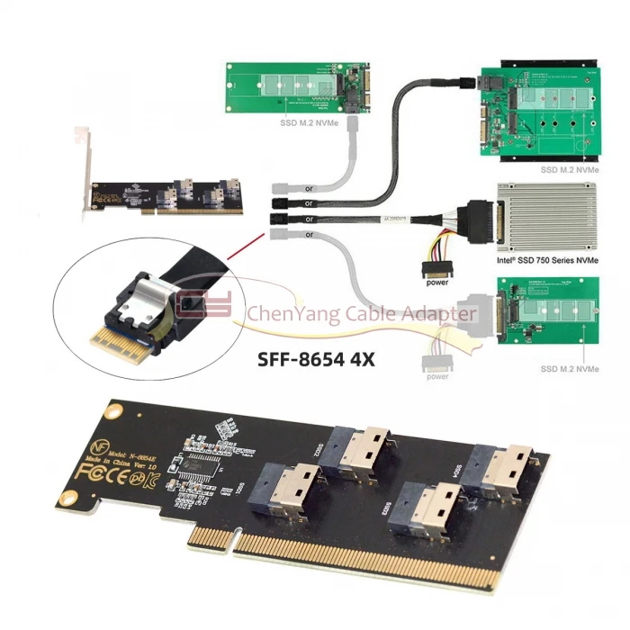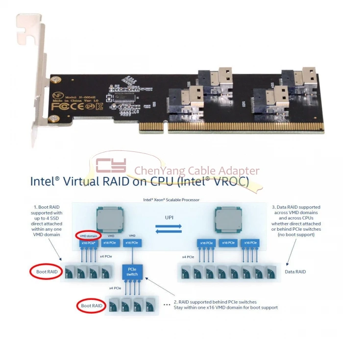 Comprar Cuatro Slimline SFF-8654 4X 4 NVME a PCIE Express 3,0 4,0 tarjeta Raid VROC Raid0 Hyper adaptador