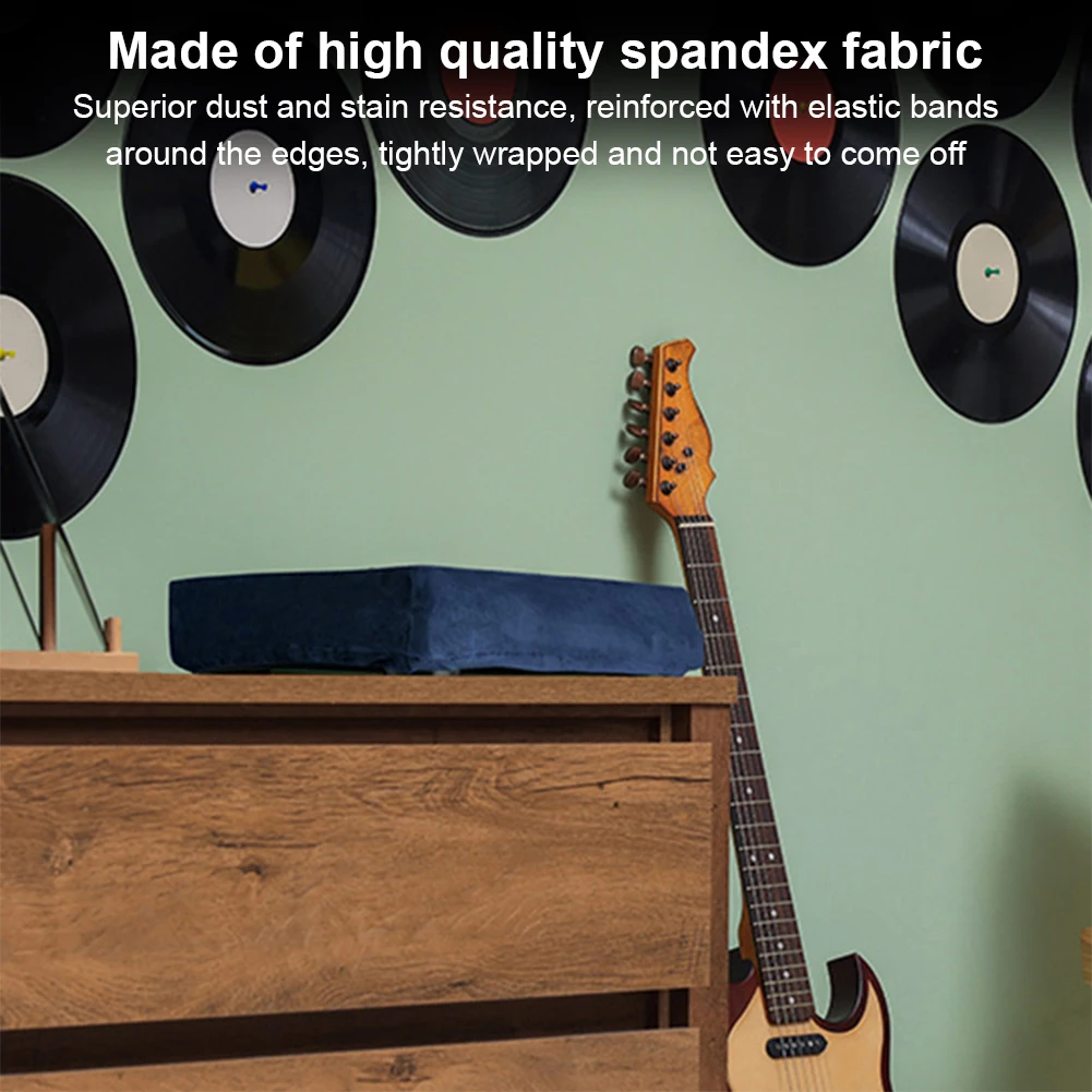 2.Material de alta calidad:Fabricada con spandex de primera calidad, esta funda para plato giratorio ofrece una excelente resistencia al polvo y las manchas, manteniendo su plato giratorio limpio e impecable en cualquier entorno.Su material robusto garantiza una protección duradera contra la suciedad y la mugre.