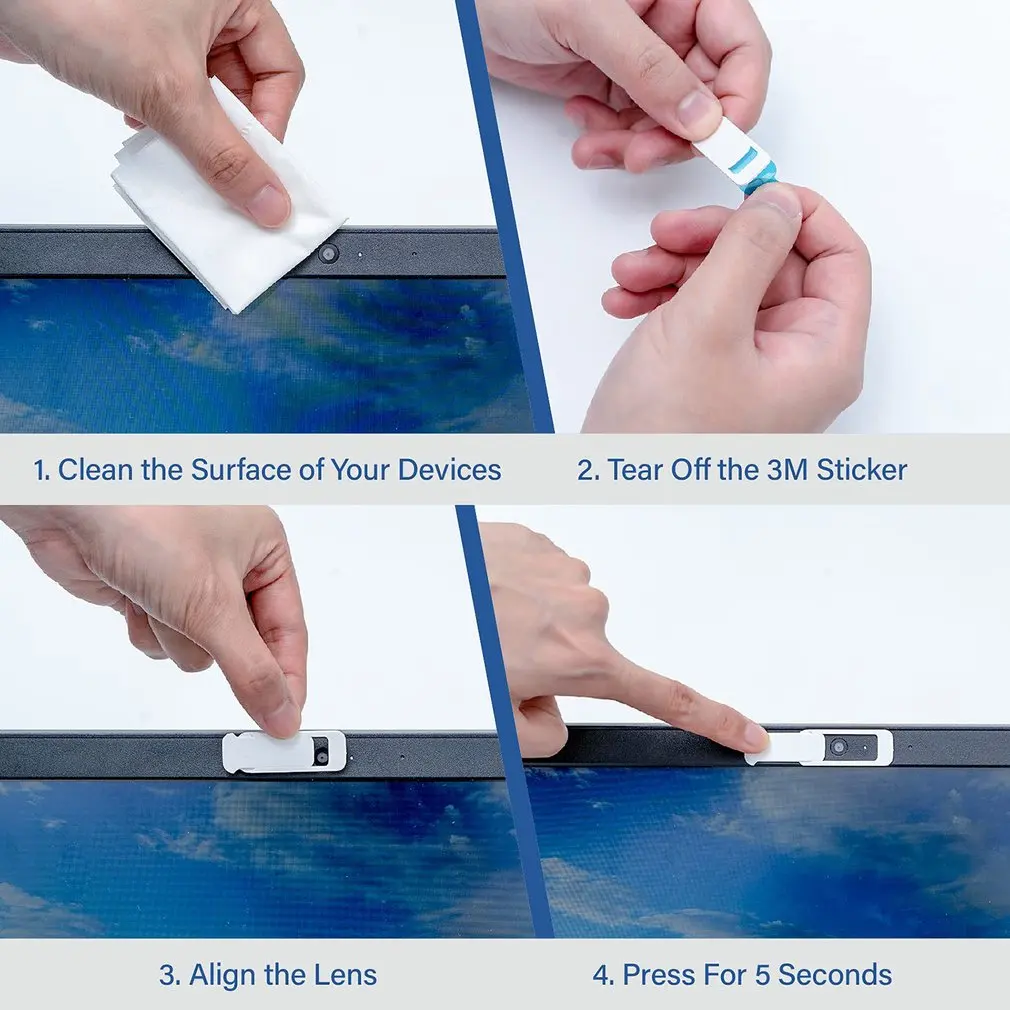 4. Duradero y fácil de desmontar: la parte posterior de la pegatina de la cubierta de la cámara está equipada con un fuerte adhesivo de doble cara 3M, que no se caerá después de una instalación cuidadosa; esta cubierta protectora de la cámara del ordenador portátil se puede quitar fácilmente del dispositivo sin dejar ningún rastro.