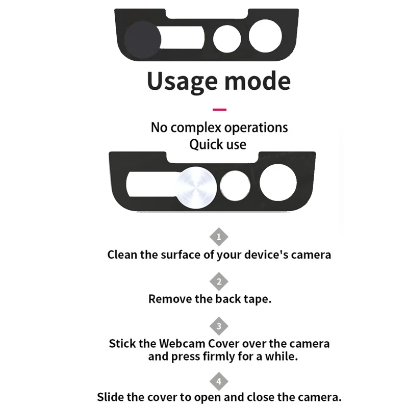 -Fácil de usar: la cubierta de la cámara web se puede abrir o cerrar con solo un simple movimiento del dedo.El adhesivo se puede aplicar y quitar fácilmente del dispositivo requerido sin dejar rastro.