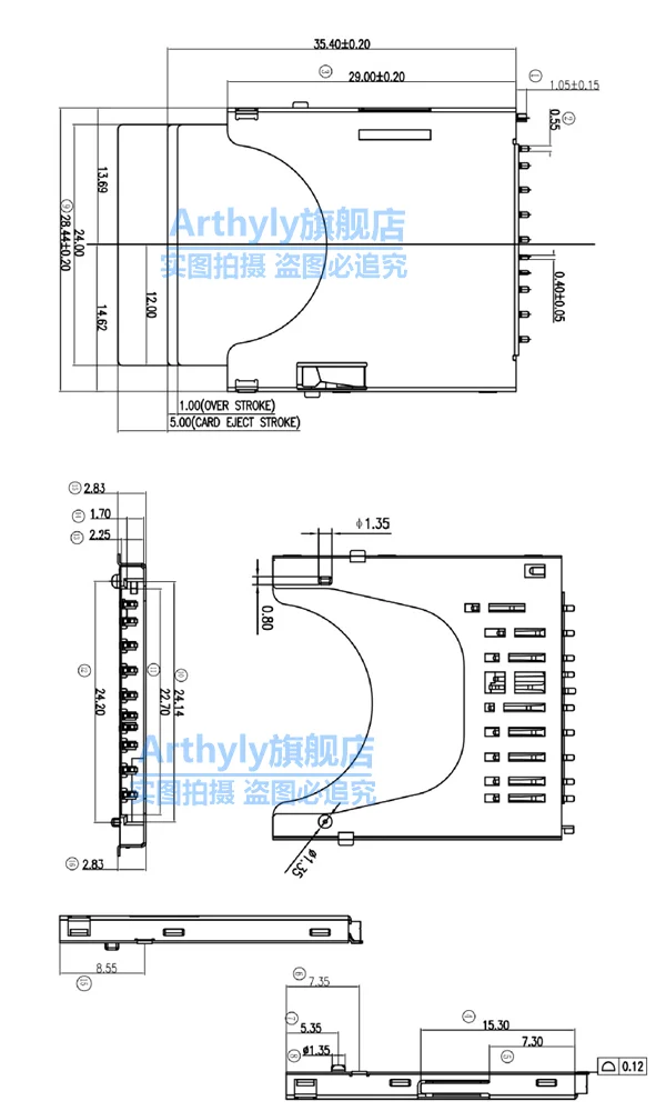 10 10Pin SD Combo Deck Bomb Ranura para tarjeta SD emergente Carcasa de conector SD