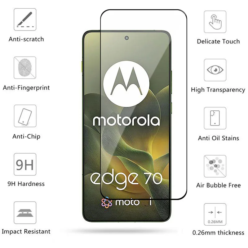 Comprar Cubierta completa de vidrio para Motorola Edge 70, vidrio templado, Protector de pantalla para Moto Edge 70, película protectora HD para lente de teléfono, Moto Edge 70