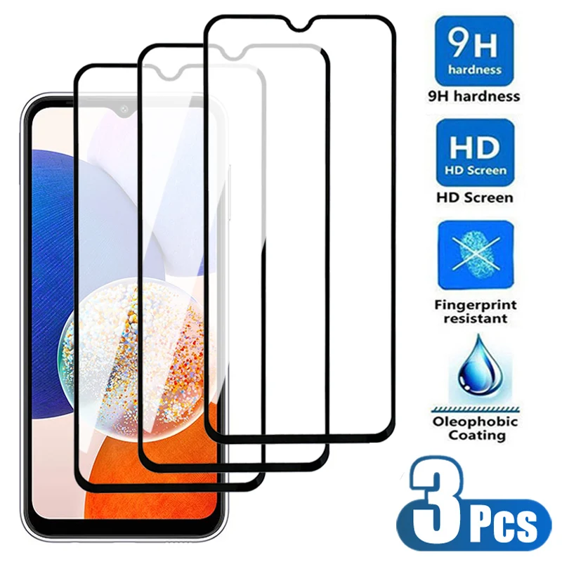 Comprar Cubierta completa de vidrio templado para móvil, película protectora para Samsung Galaxy A14, A24, A34, A54, A12, A13, A04, A23, A53, A52, A72, A73, A74, S20FE, 5G, 3 unidades