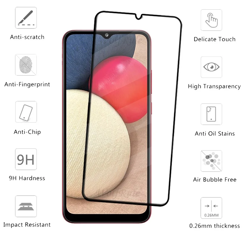 Comprar Cubierta completa de vidrio templado para Samsung A02S, Protector de pantalla 9H con pegamento, para Galaxy A02S, 4 unidades