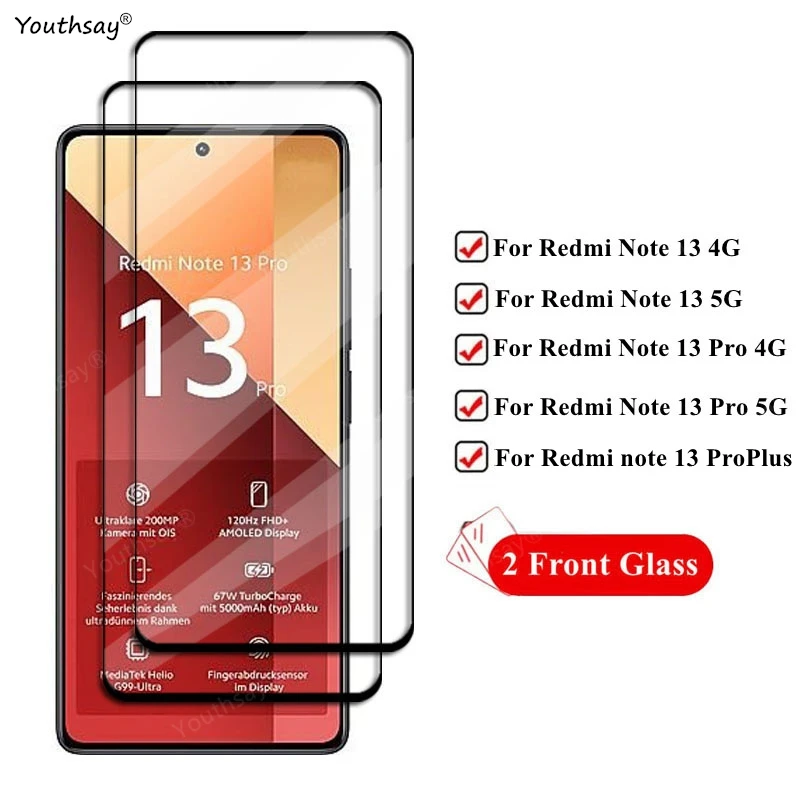 Comprar Cubierta completa de vidrio templado para Xiaomi Redmi note 13 Pro Plus, película de vidrio para pantalla de teléfono, 2 piezas