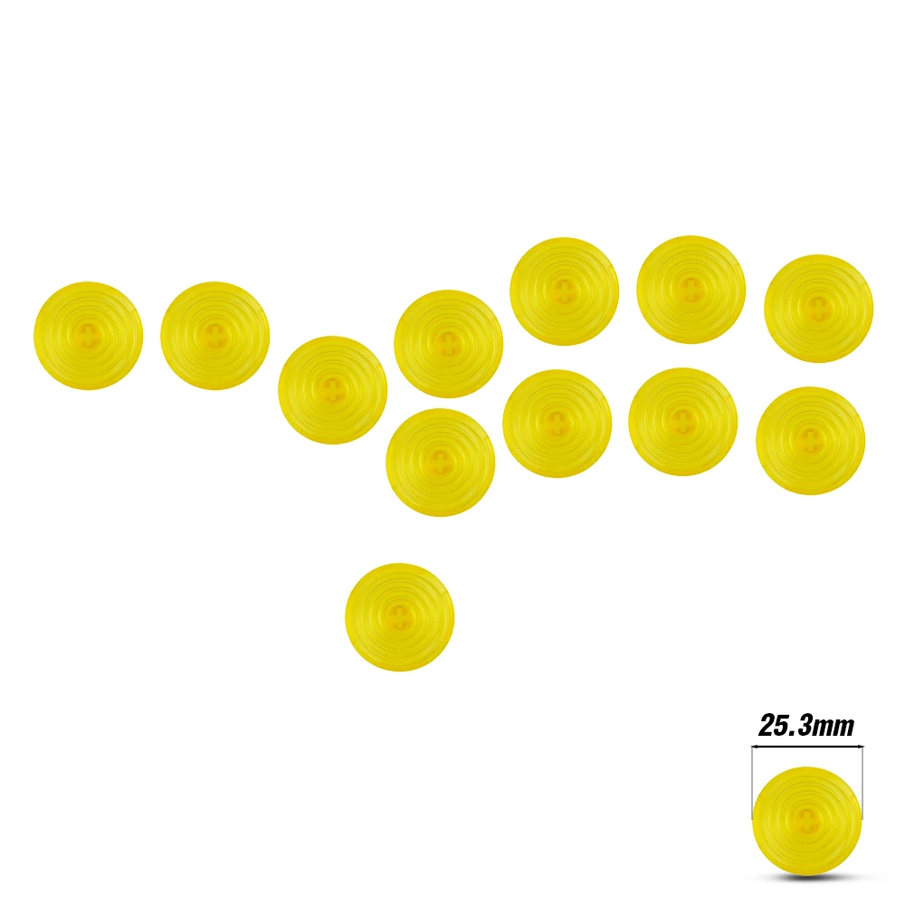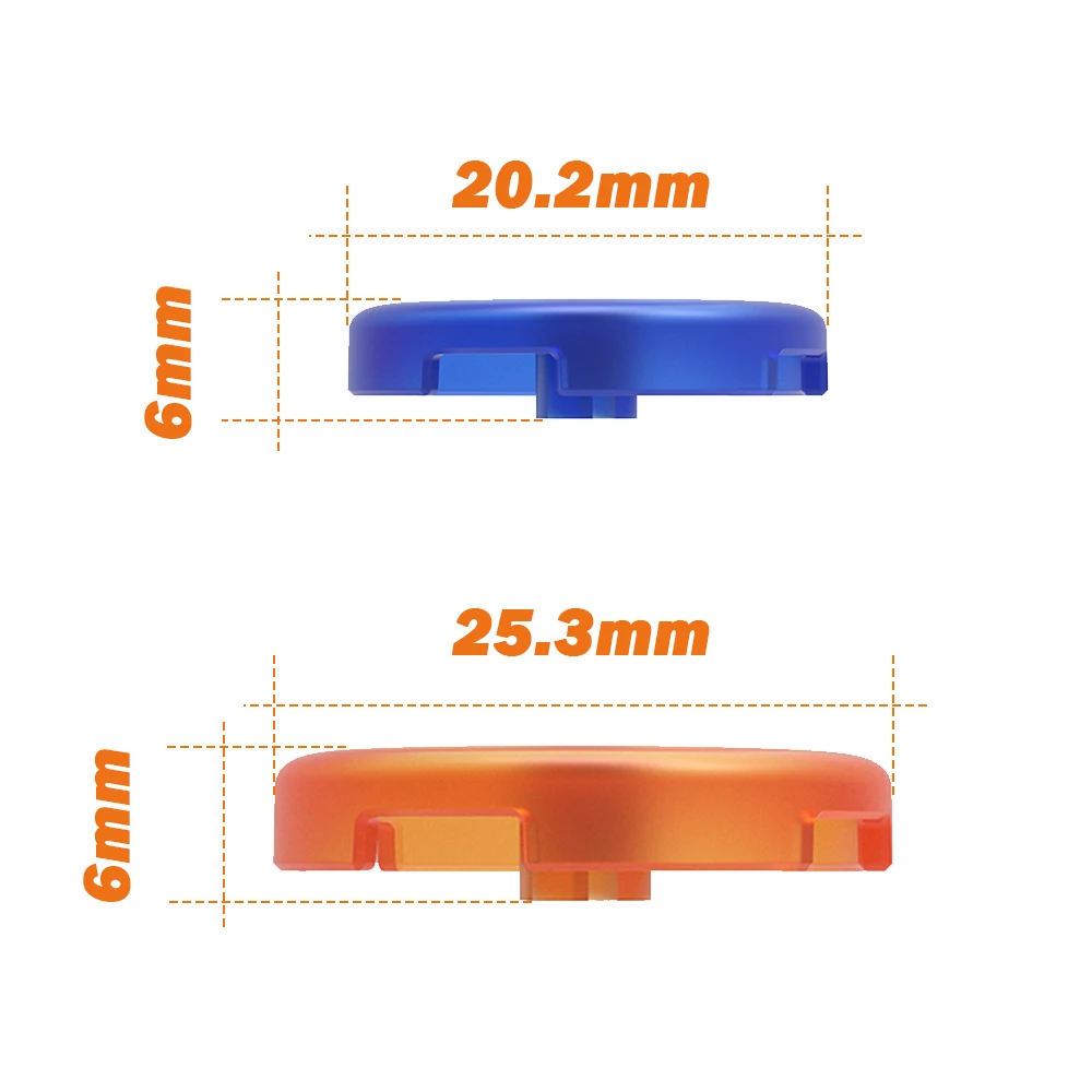 The actual diameter of the keycap buttons measures 20.2mm/25.3mm. Fit in 24mm/30mm hitbox hole.