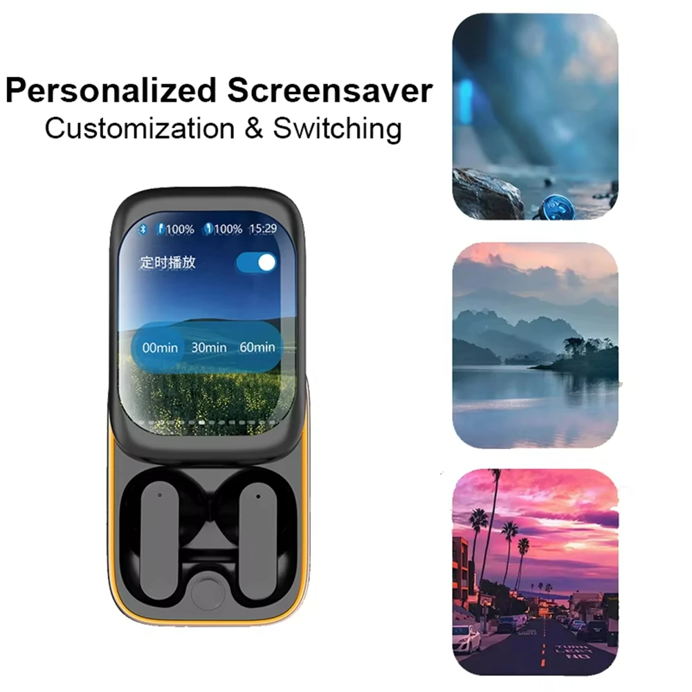 Auriculares Bluetooth 5,3 inalámbricos verdaderos deslizables, pantalla LCD táctil a todo Color, auriculares con aplicación para jugadores de bajos para teléfono Android IOS, regaloEspecificaciones:Versión de Bluetooth: V5.3Diámetro de la bocina: 13 mmInterfaz: puerto de carga tipo cDistancia de Bluetooth: 10 mNúmero de modelo: Auriculares con pantalla LCD deslizableDuración: 4H o 10H (con estuche de carga)Batería de los auriculares: 30 mAhCapacidad del estuche de carga: 300 mAhTiempo de carga: 1,5HTamaño: 60*43*28,6mmOperación táctil:1Reproducir/Pausar:Haga clic (al escuchar música)2Canción anterior: oreja derecha con doble toque3Encender/apagar el modo de juego: Oreja izquierda/derecha de cuatro toques4Respuesta/colgar:Un solo clic (durante la llamada entrante o saliente)5Siguiente canción: toque dos veces en el oído izquierdo6Inicio del asistente de voz: mantenga presionada el oído izquierdo/derecho durante 3 segundosEl paquete incluye:1 * auriculares LCD deslizables1 * estuche de carga1 * Cable de carga1 * Manual de usuario