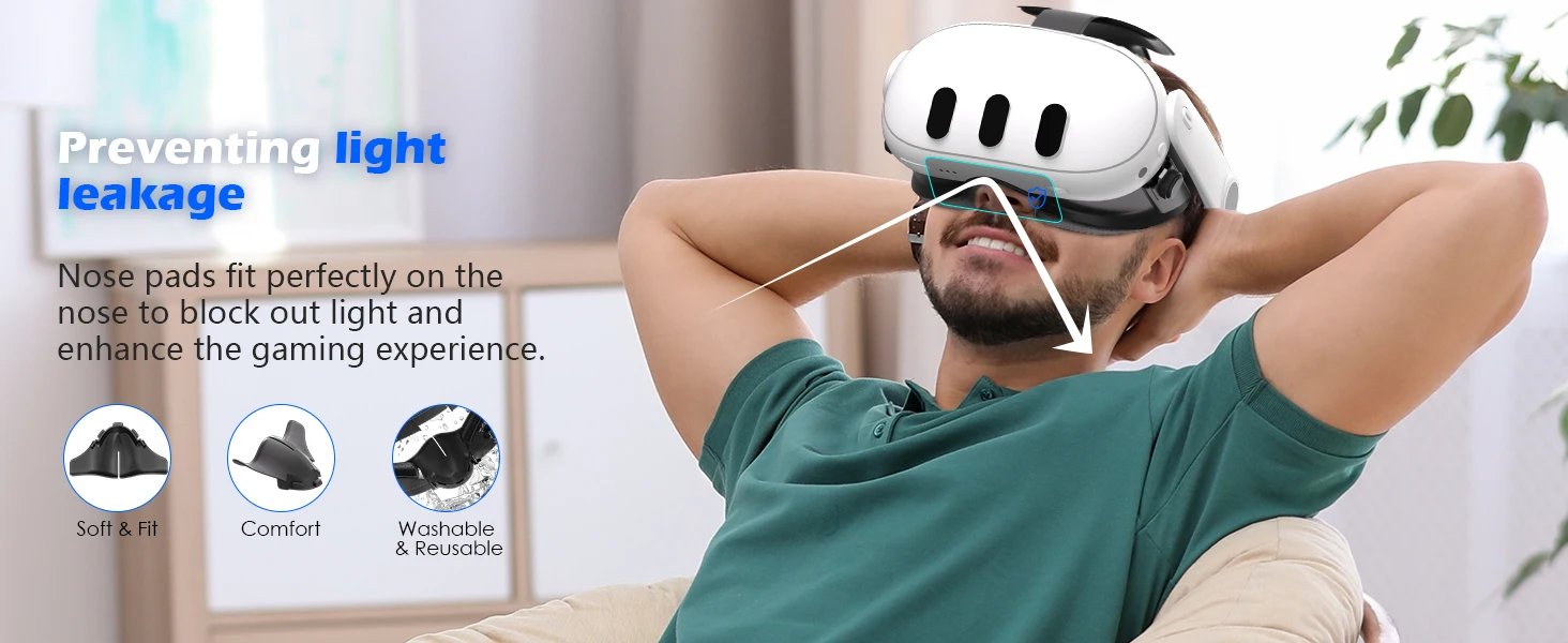 EFECTO DE BLOQUEO DE LUZ ACTUALIZADO: La cubierta facial viene con una almohadilla nasal hecha de material de silicona de alta calidad, que puede bloquear eficazmente que la luz penetre a través de los huecos, suave y cómoda para disfrutar de la experiencia VR.La almohadilla nasal es extraíble y se puede desmontar y limpiar en cualquier momento.