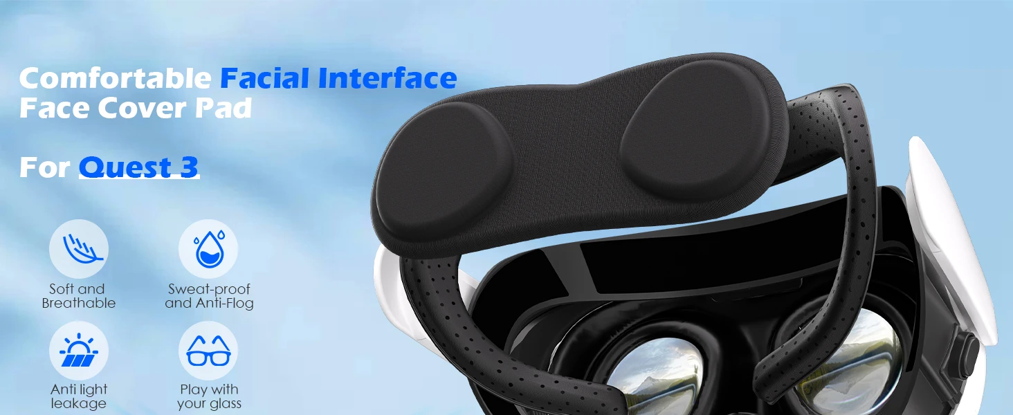 Comprar Cubierta facial con interfaz Facial para Meta Quest 3 VR con almohadilla nasal antiligera, cojín facial de cuero PU para accesorios Meta Quest 3