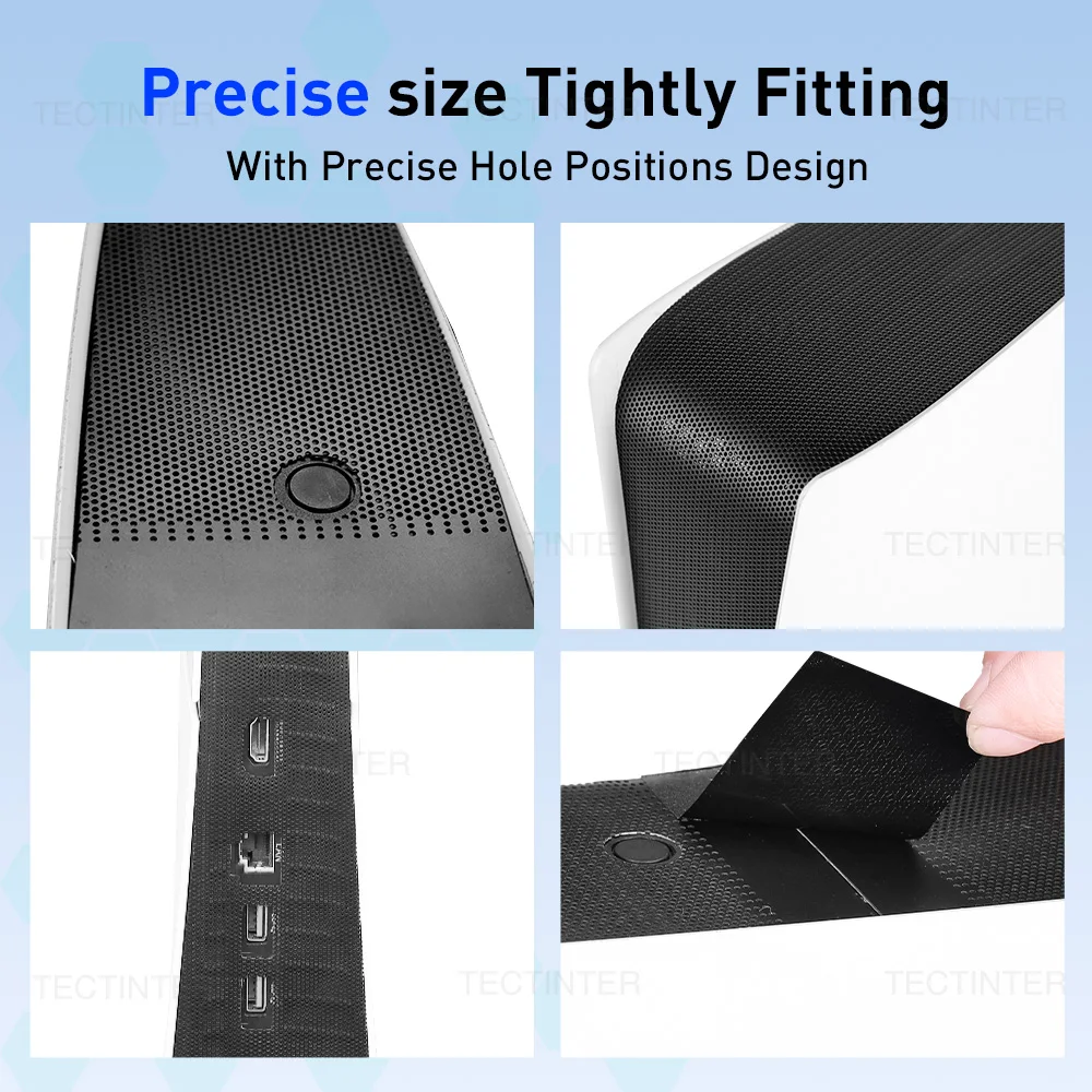 El filtro cubre todos los lados de su consola: frontal, trasera, superior, inferior.Reduce la acumulación de polvo y pelo de mascotas en la consola delgada PS5 y también se puede usar en la piel central de la consola delgada PS5 para evitar rayones y huellas dactilares.