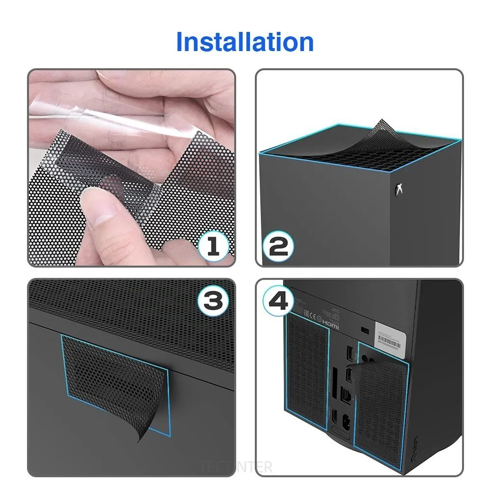 El filtro de malla de polvo de ventilador de PVC para mantener y proteger su host XSX limpio, sin necesidad de tornillos, instalación fácil y conveniente.