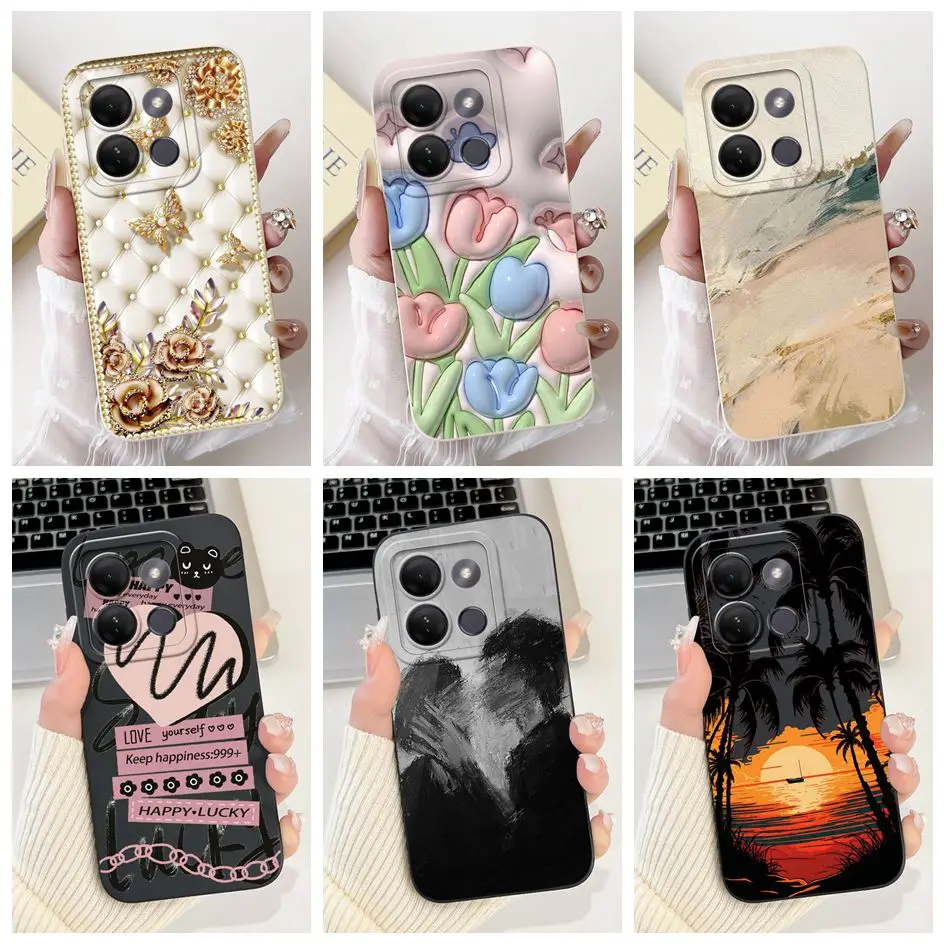 Para funda Infinix Smart 7 HD funda de teléfono X6516 Popular atardecer flor parachoques líquido silicona fundas suaves para Smart 7HD X6516 Funda