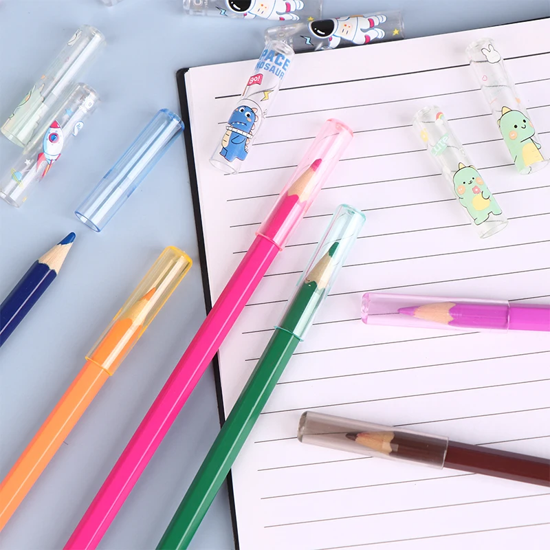 Comprar Cubierta de lápices de colores para niños, 6 piezas, papelería de aprendizaje, sombrero, escuela, estudiante, herramienta de escritura protectora