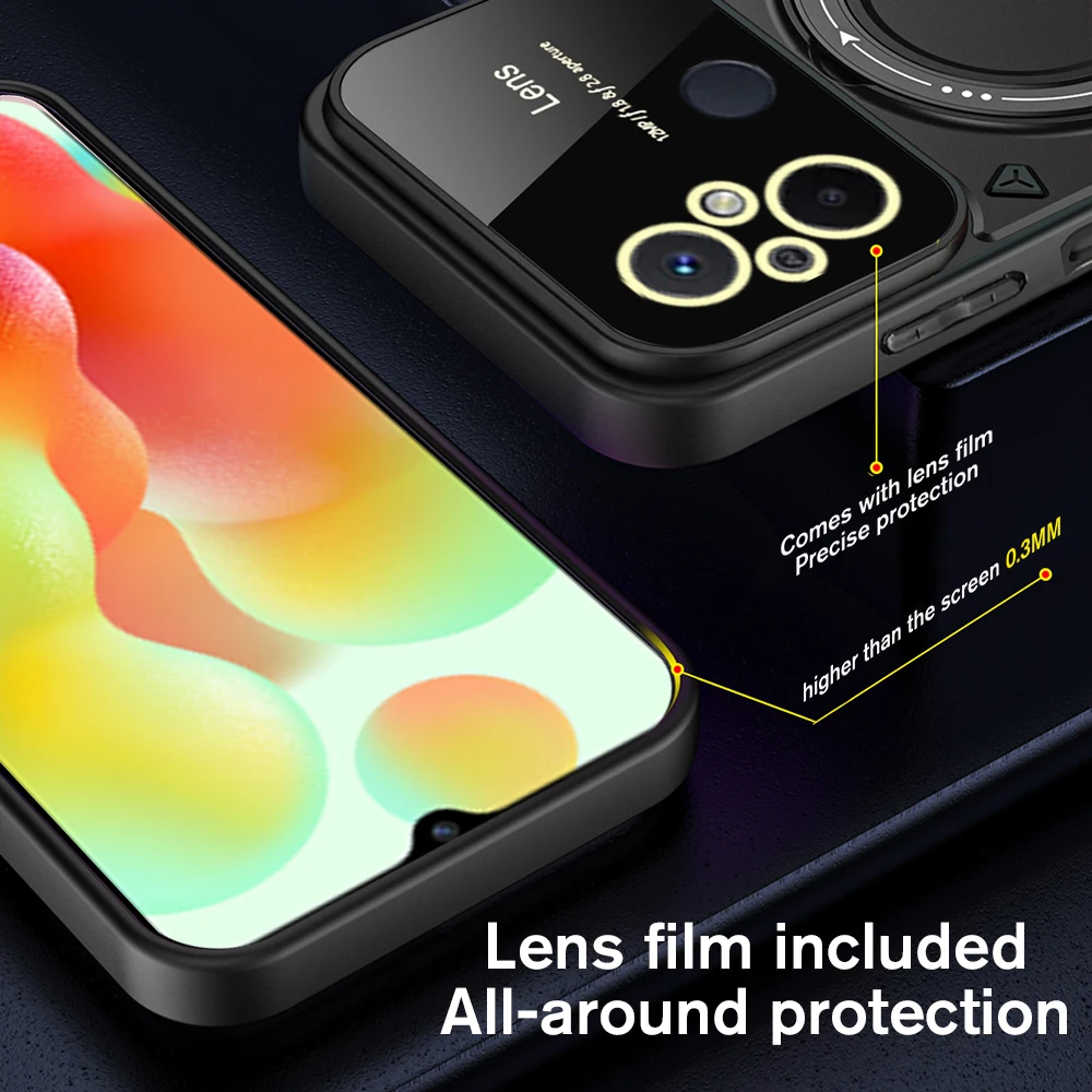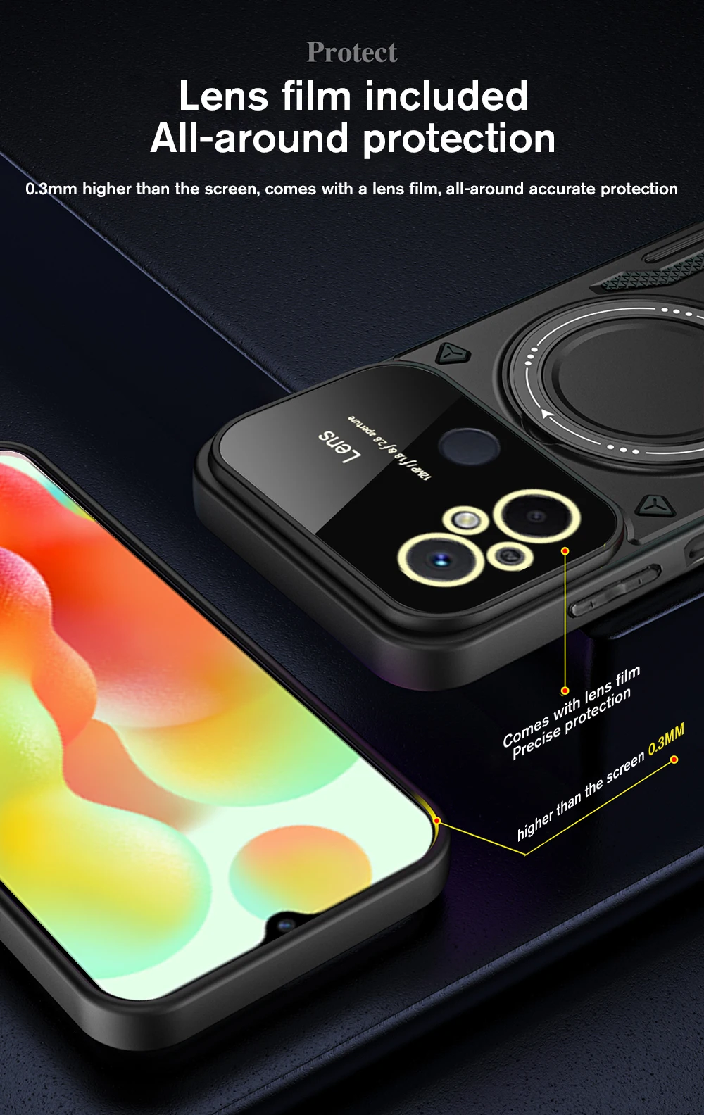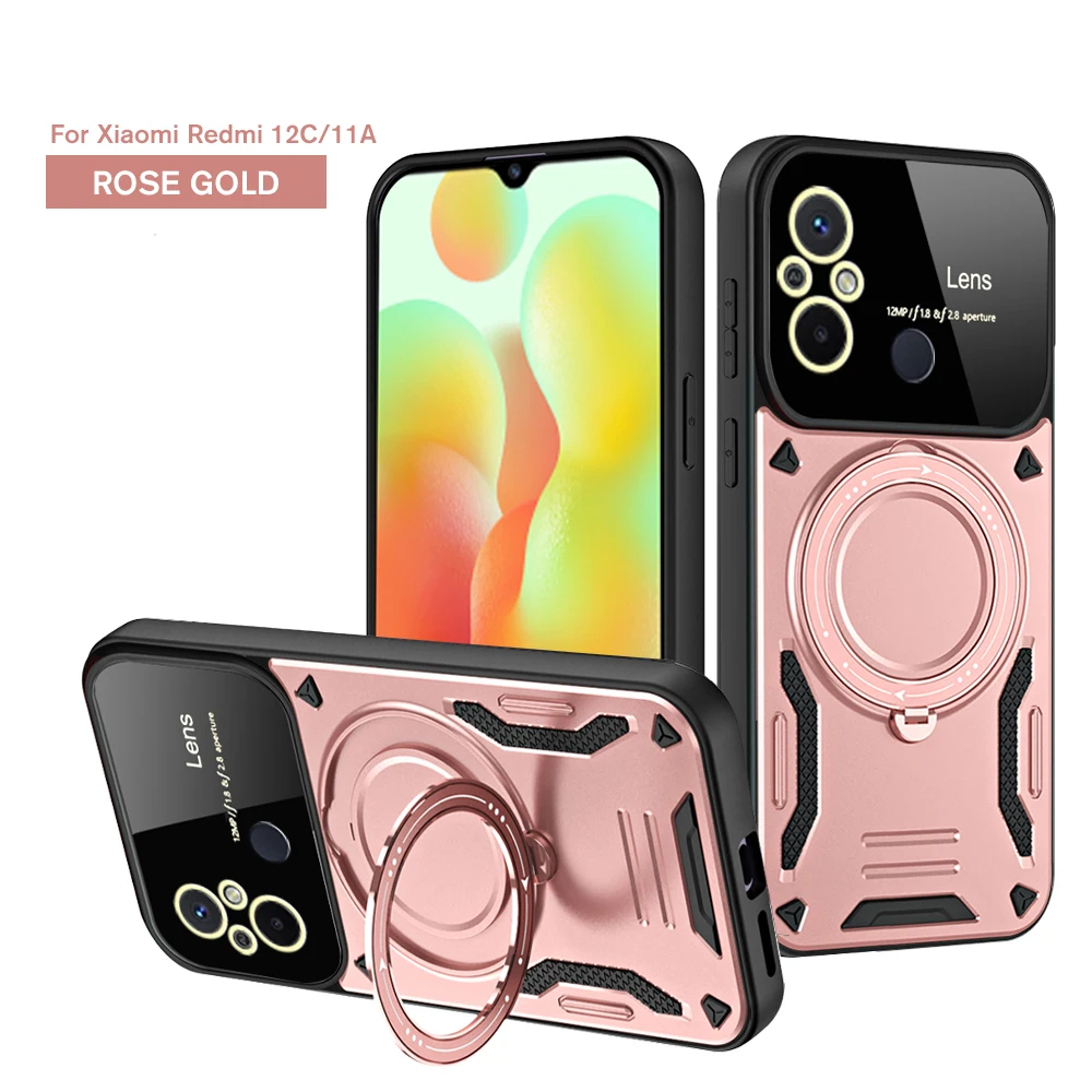 Para Redmi 12C Funda Protección de lente completa Cubierta magnética en Xiaomi Redmy 12 C C12 Redmi12C 4G 360 ° Girar Soporte de anillo oculto Fundas