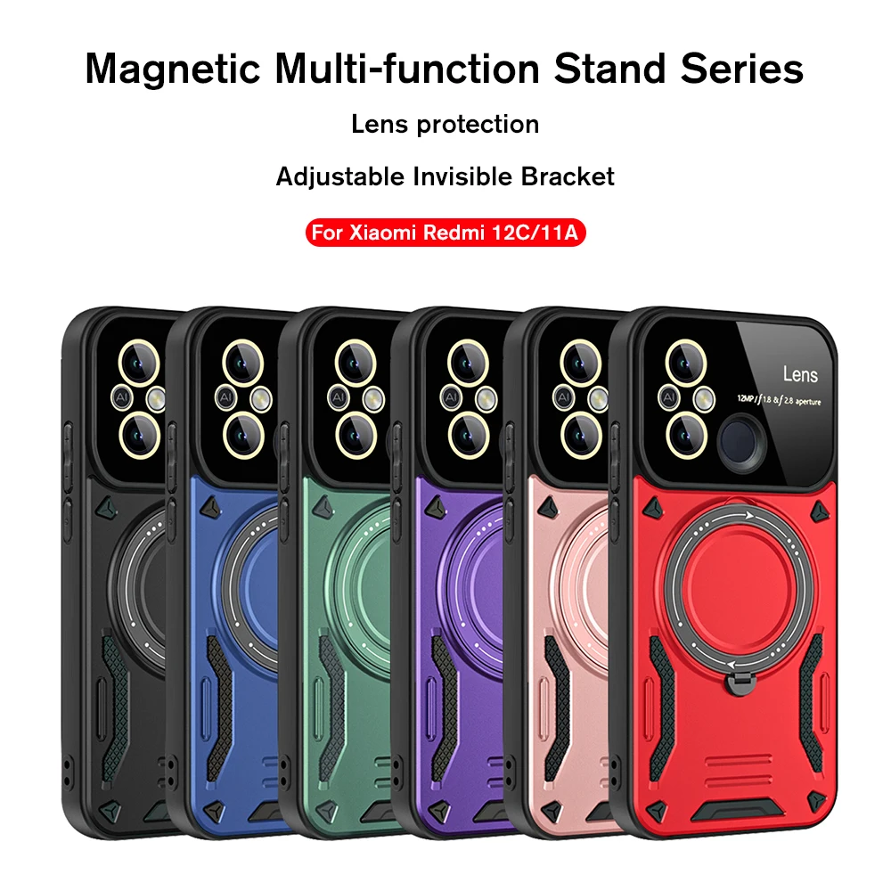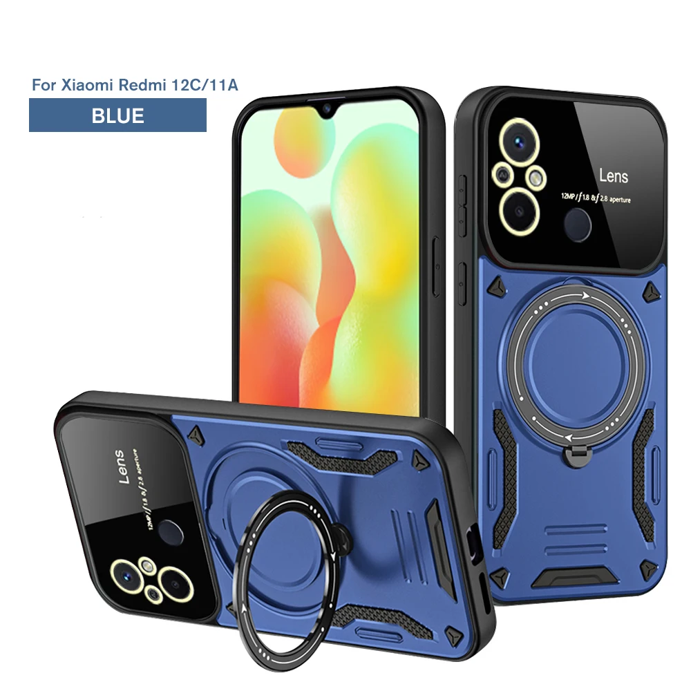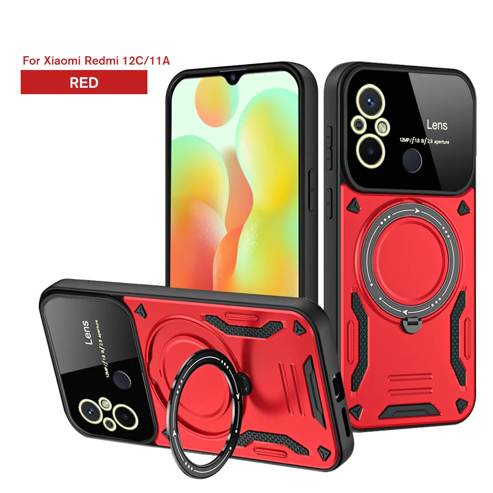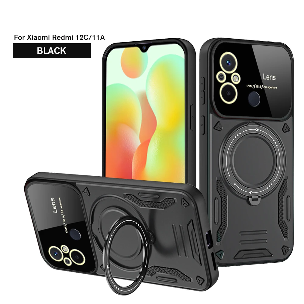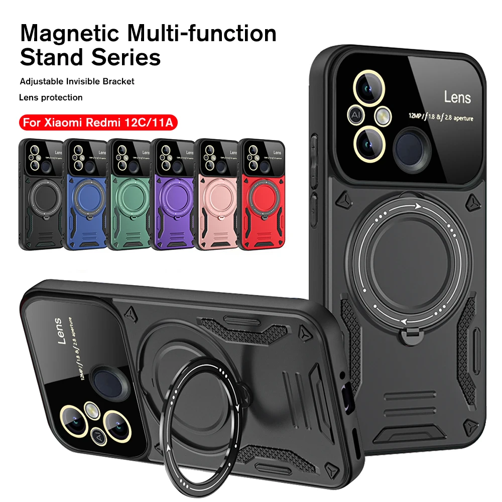 Comprar Cubierta magnética de protección de lente completa para Xiaomi Redmi 12C, funda con soporte de anillo oculto, 4G, rotación de 360 °