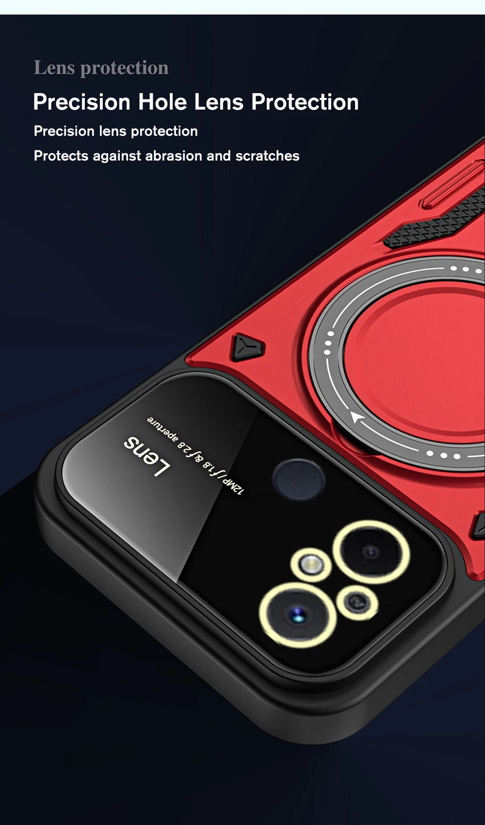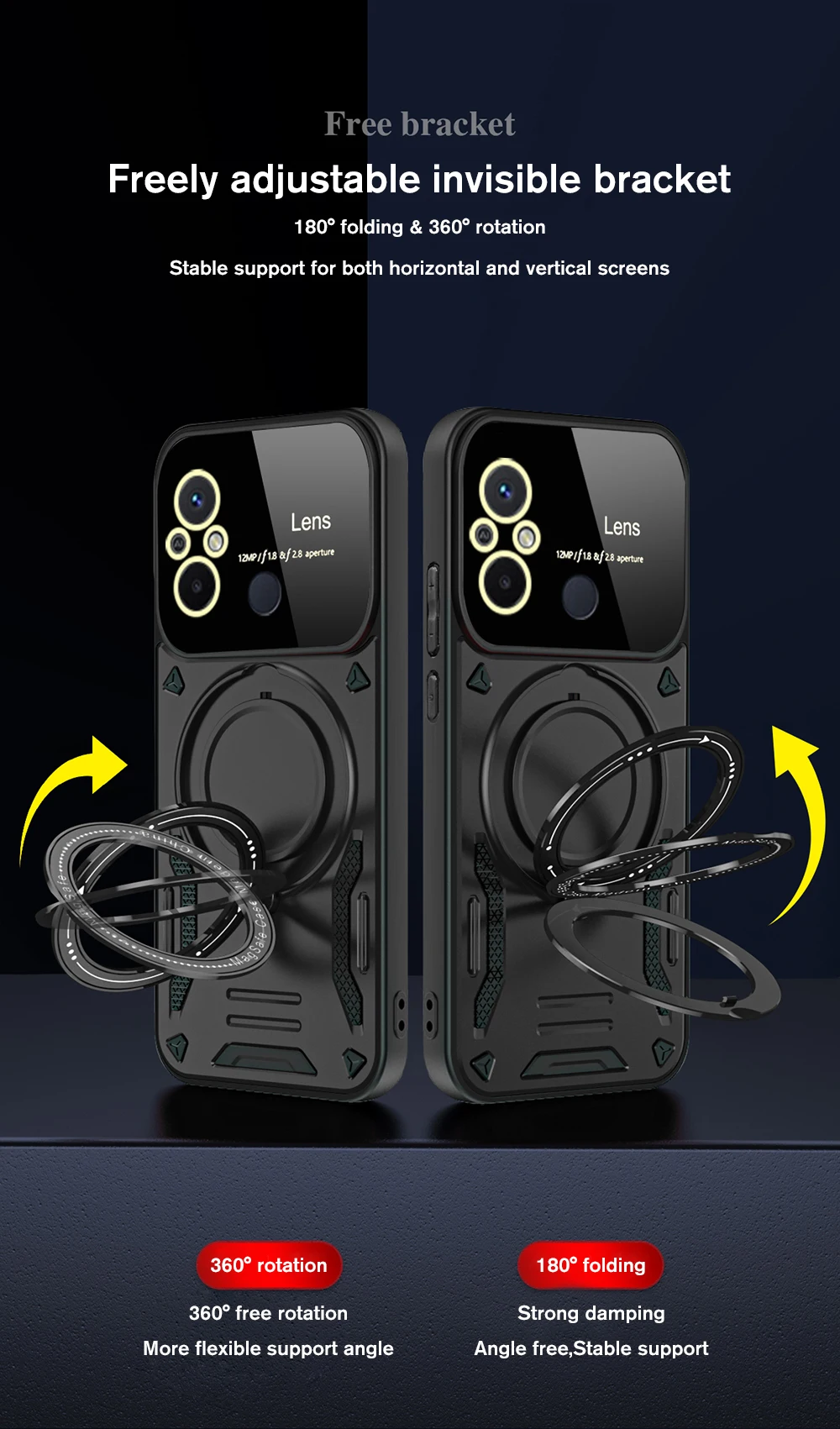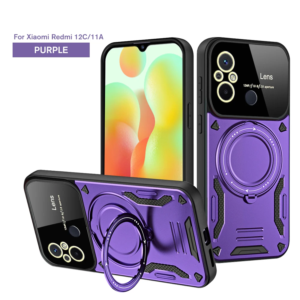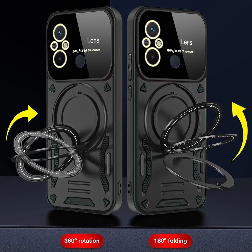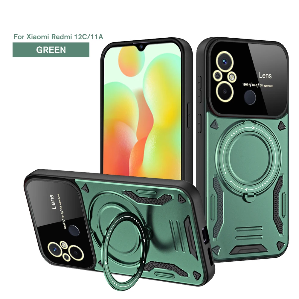 Comprar Cubierta magnética de protección de lente completa para Xiaomi Redmi 12C, funda con soporte de anillo oculto, 4G, rotación de 360 °