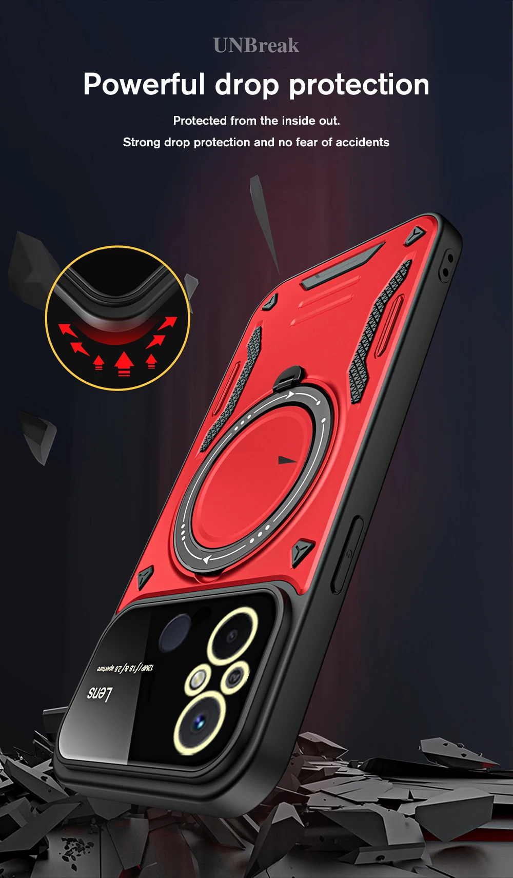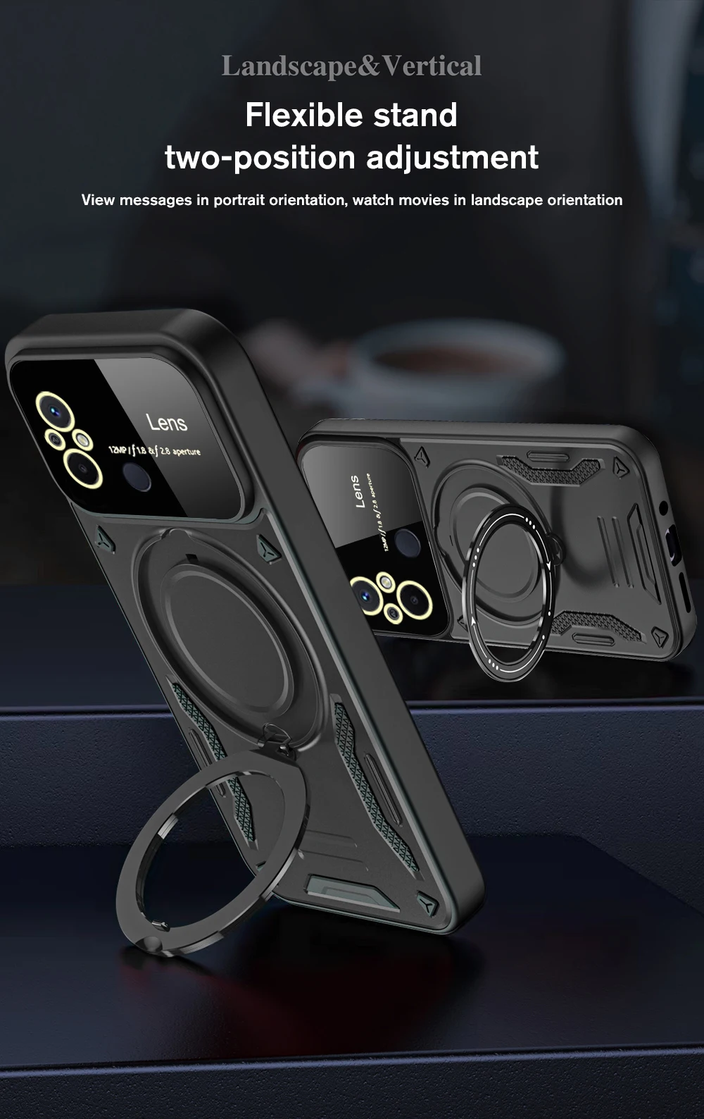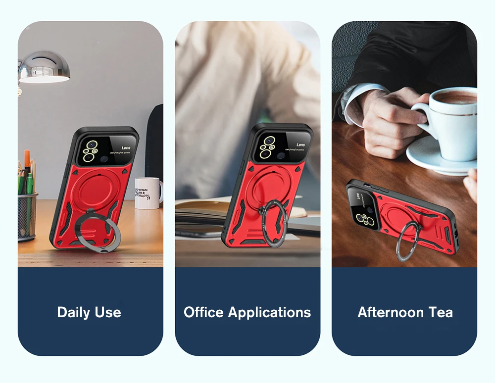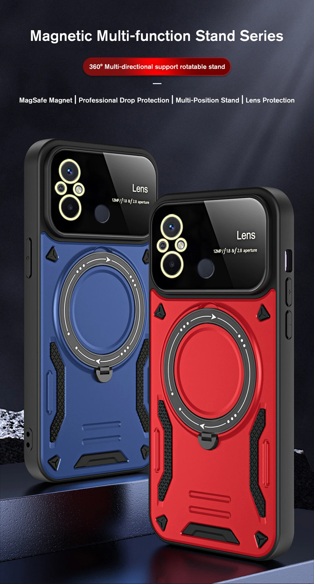 Comprar Cubierta magnética de protección de lente completa para Xiaomi Redmi 12C, funda con soporte de anillo oculto, 4G, rotación de 360 °