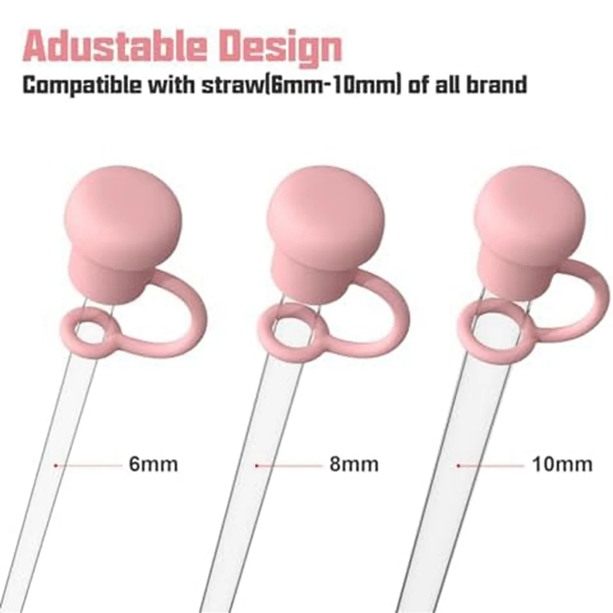 Se adapta a todas las marcas de pajitas: diseño con diámetro interno ajustable (6 mm-10 mm).Adecuado para todas las marcas de Stanley, Simple Modern, Yeti, O Akadem, Hydro Flask, Reduce, Maars, Meoky, MaxBase, Beast, Hydrapeak, etc.SIN límite de marca.