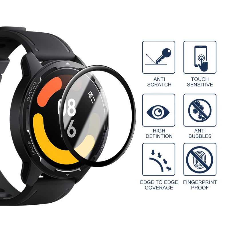 Comprar Cubierta de película protectora de fibra de vidrio suave para Xiaomi Mi Watch Color 2, carcasa protectora de pantalla para Xiaomi Mi Watch S1 Active