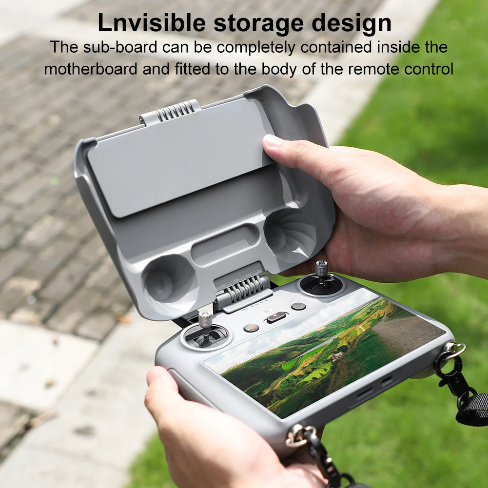 3. Diseño de almacenamiento invisible:El parasol protector RC Joysticks ofrece una solución de almacenamiento única, con subpaneles que se insertan perfectamente en el Panel Principal, encajando perfectamente con el cuerpo del controlador. Este diseño ahorra espacio y evita daños cuando no está en uso.