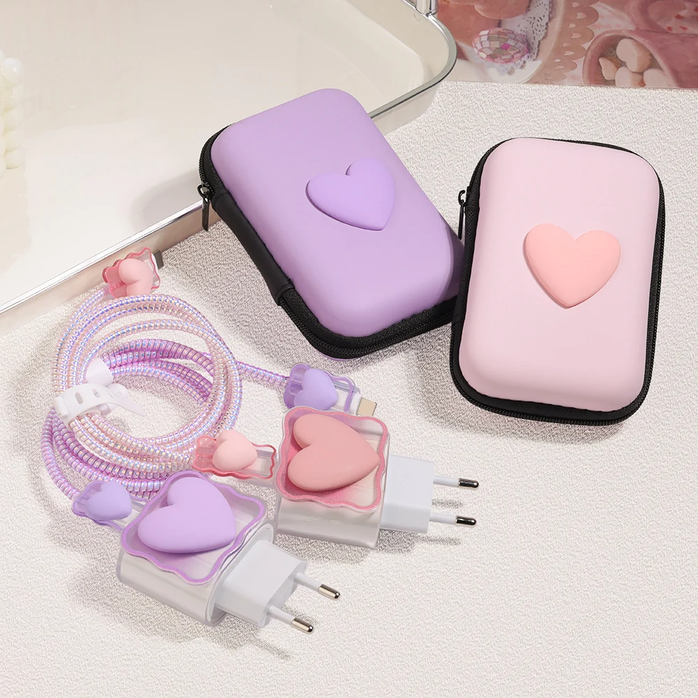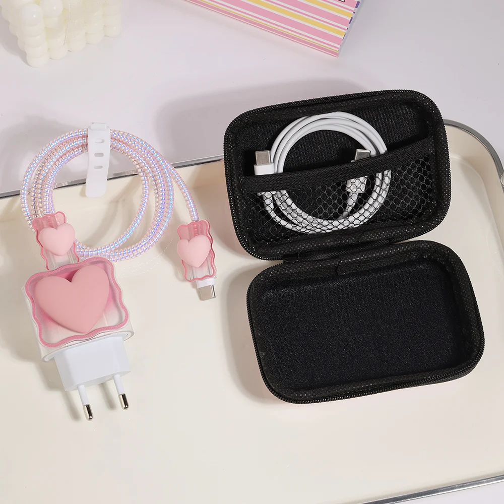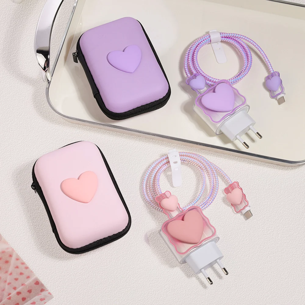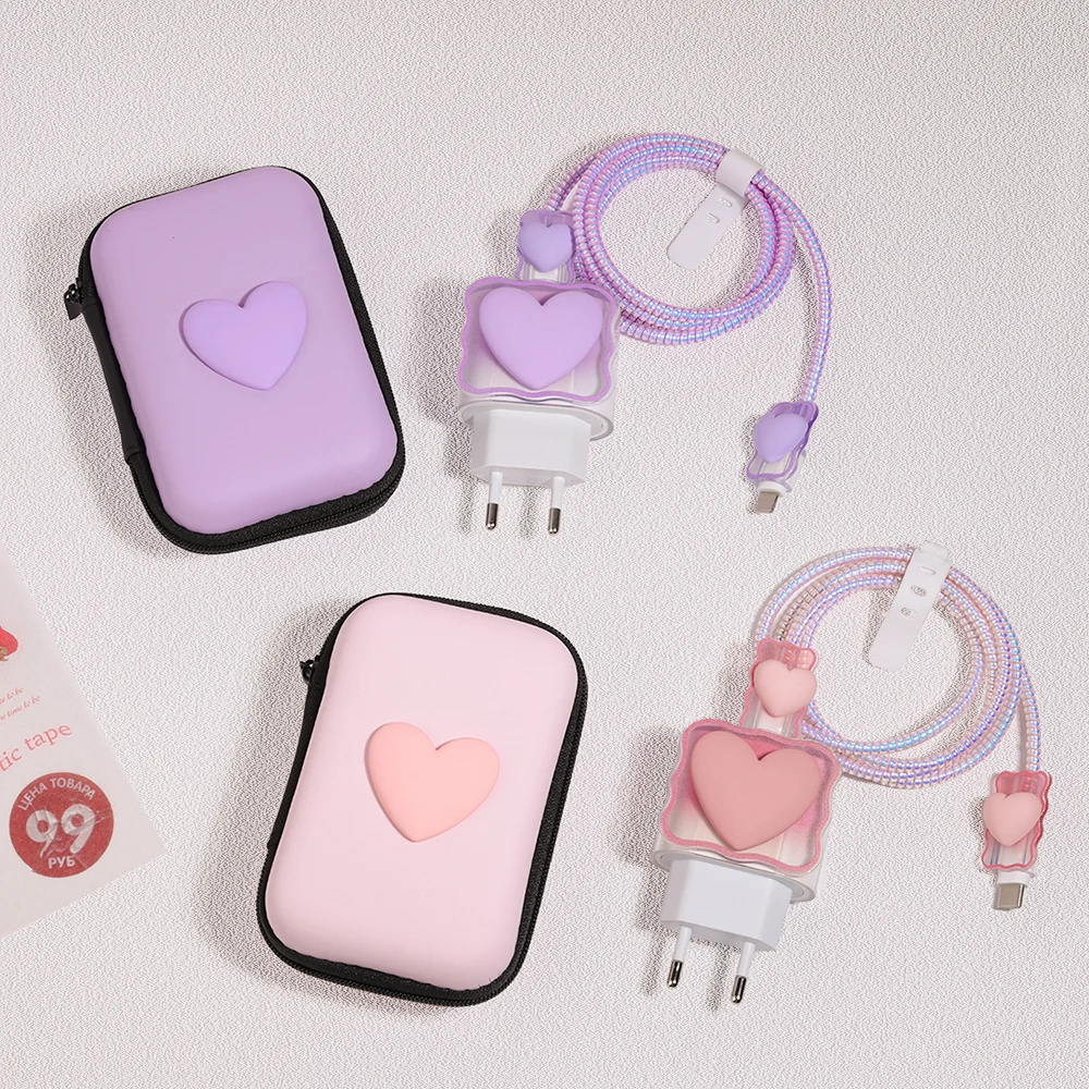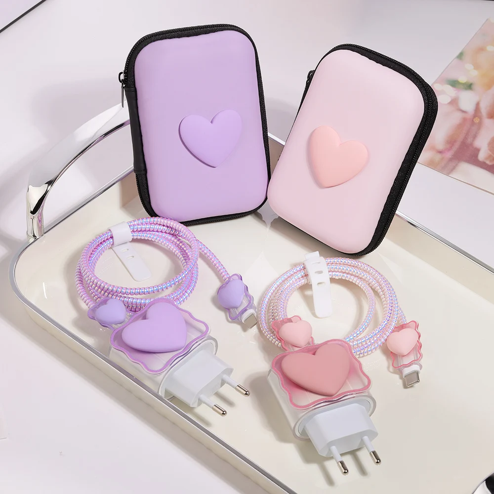 Funda protectora para Cable de datos 3D Love Heart para iPhone 11 15 16 Pro Max 14 13 12 18W 20W Fundas para cargador Organizador de cables enrollador de cables