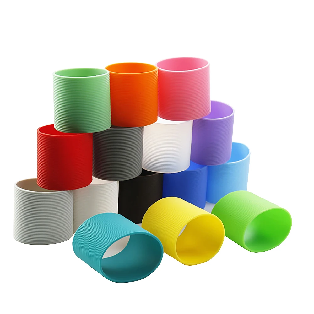 Cilindro recto antideslizante de vidrio de 9,5 CM, cubierta protectora de taza de Gel de sílice espesada antiescaldado