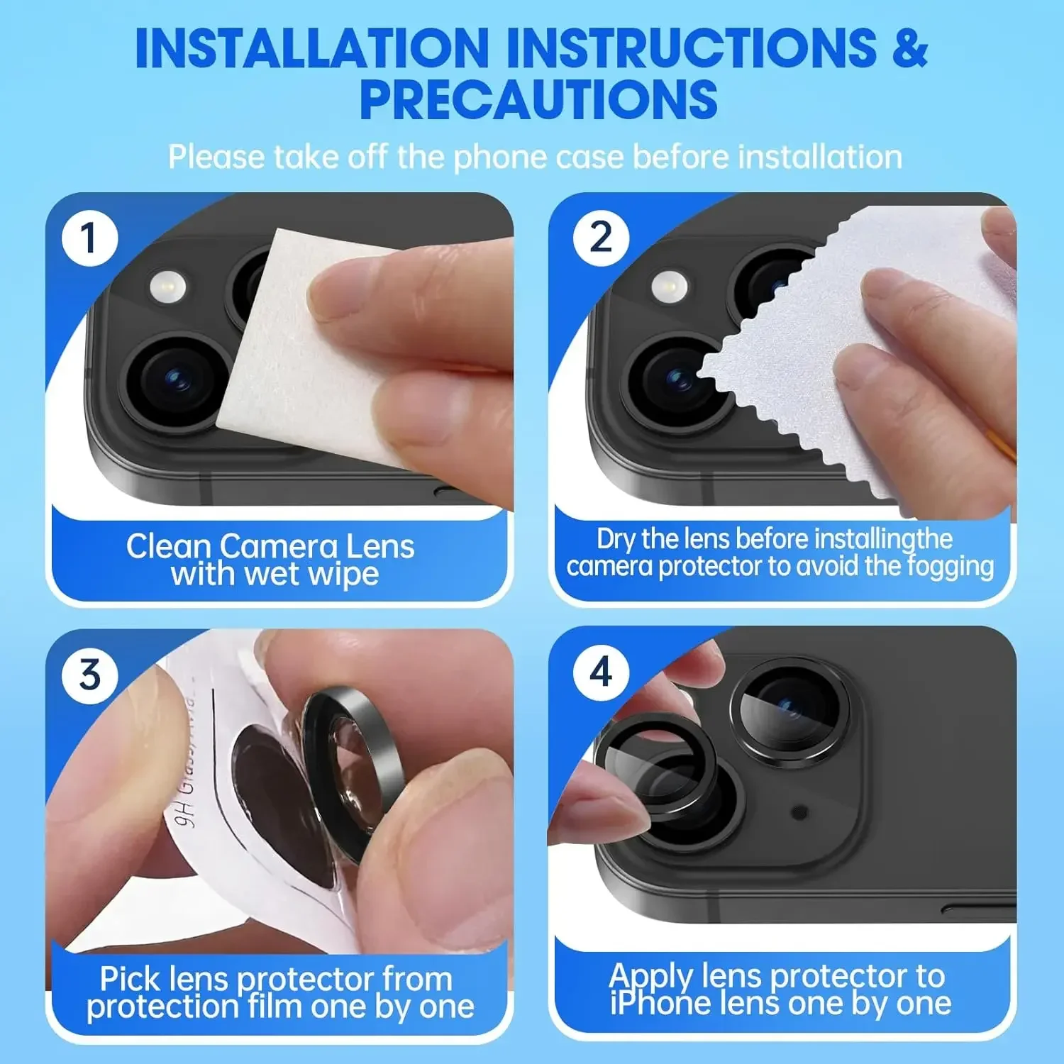Cubierta protectora de lente de cámara de vidrio templado para iPhone 15 Pro Max 14 Plus 13 Mini 12 11 15Pro 15Plus, accesorios de protección para teléfono