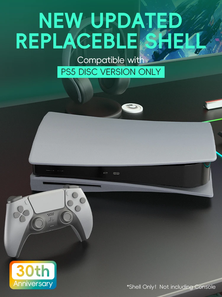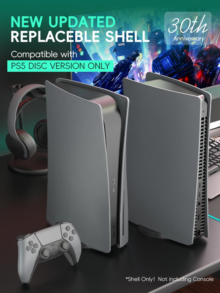 Comprar Cubierta protectora para PS5 gris del 30 ° aniversario, conjunto completo de accesorios de repuesto de placa frontal para consola PS5, versión Digital de disco