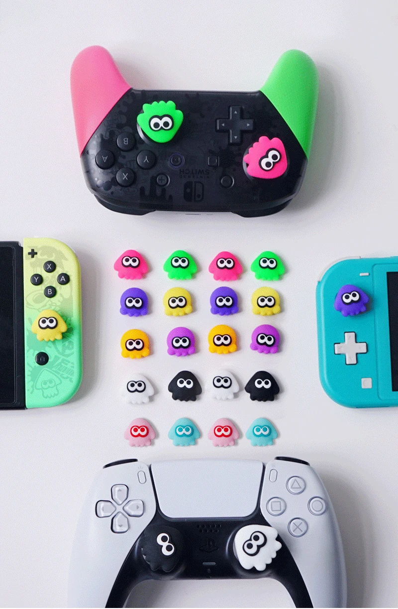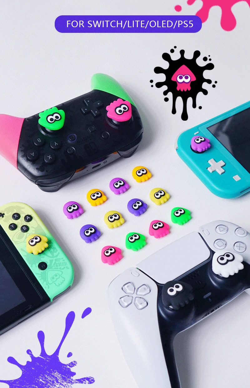 Tapas de agarre de pulgar analógicas de silicona de 4 compatibles con Nintendo Switch/OLED/Lite/Xbox/PS4/PS5, funda protectora de calamar pulpo