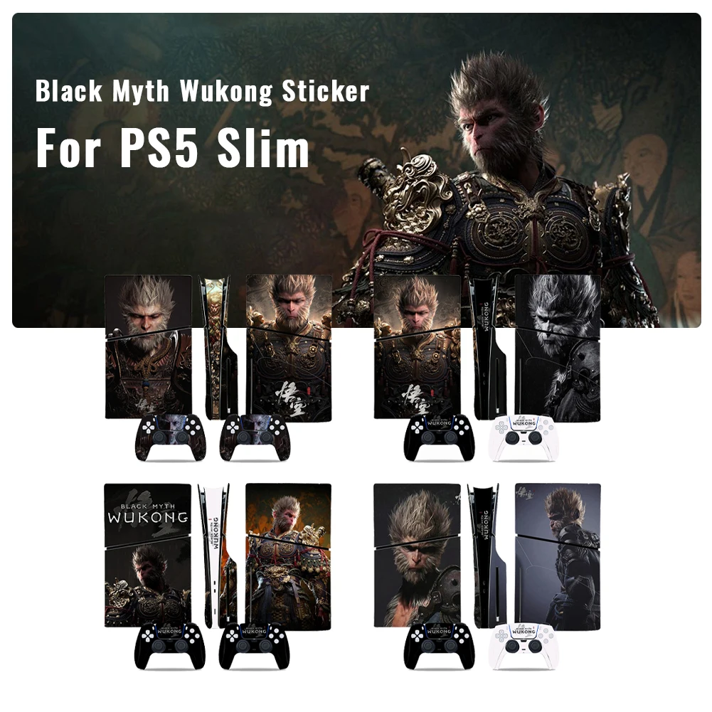 Black Myth Wukong, pegatina de piel de vinilo de cuerpo completo, cubierta protectora antiarañazos, envoltura de piel a prueba de polvo, consola y controlador, pieles compatibles con PS5 Slim Disc, consola y controladores digitales