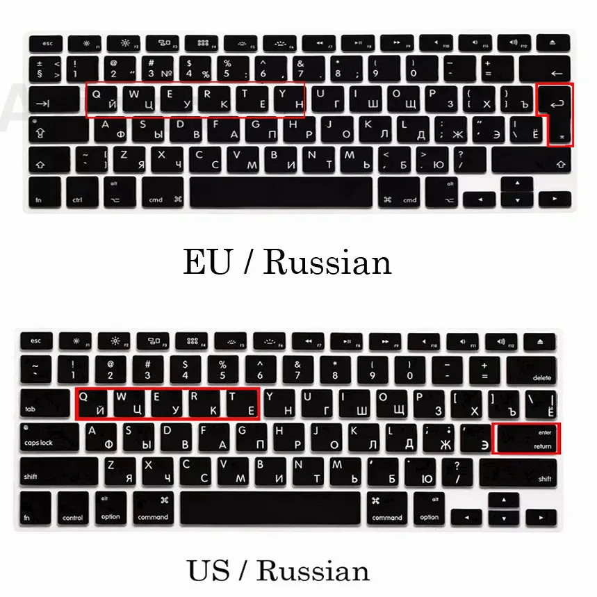 Comprar Cubierta de teclado suave para Macbook Pro 13 15 Retina 13 15 Air 13 EU US, silicona rusa A1466 A1278 A1286, piel protectora de teclado