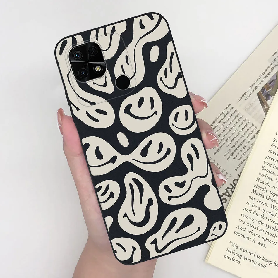 Para Xiaomi Redmi 10C 4G cubierta trasera de moda cara sonriente patrón de dibujos animados parachoques suave para Xiaomi Redmi 10C 4G nueva carcasa a prueba de golpes