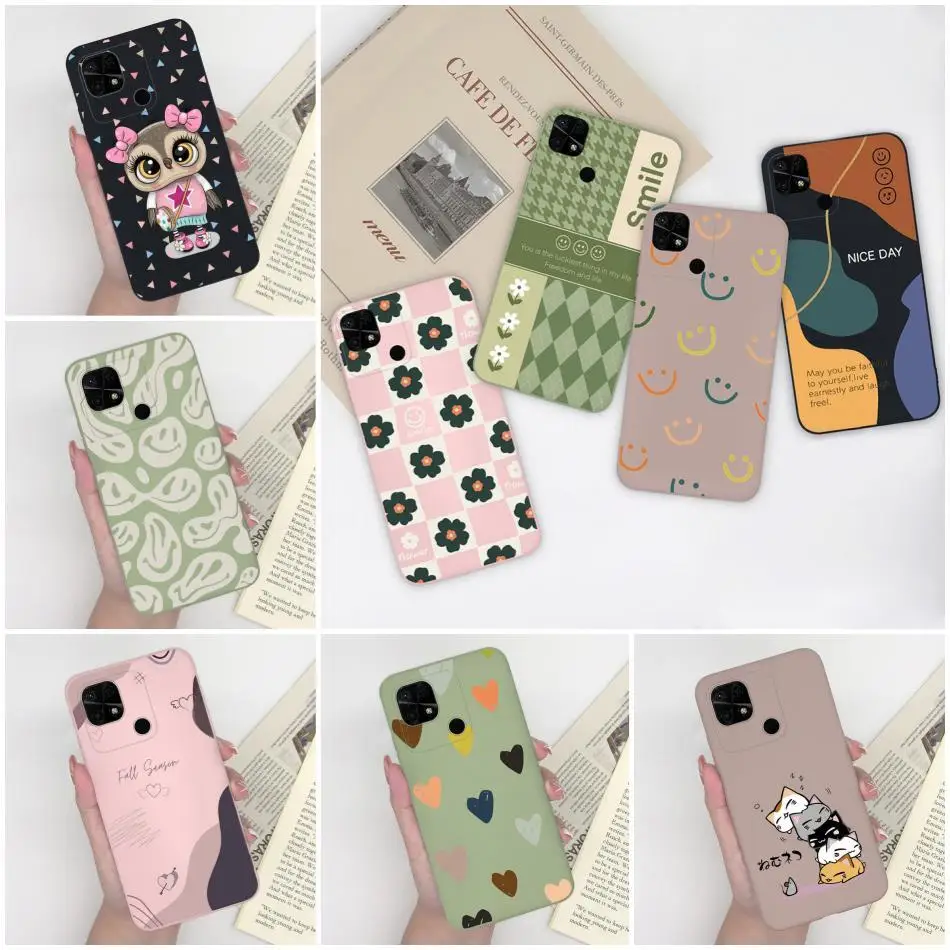 Para Xiaomi Redmi 10C 4G cubierta trasera de moda cara sonriente patrón de dibujos animados parachoques suave para Xiaomi Redmi 10C 4G nueva carcasa a prueba de golpes