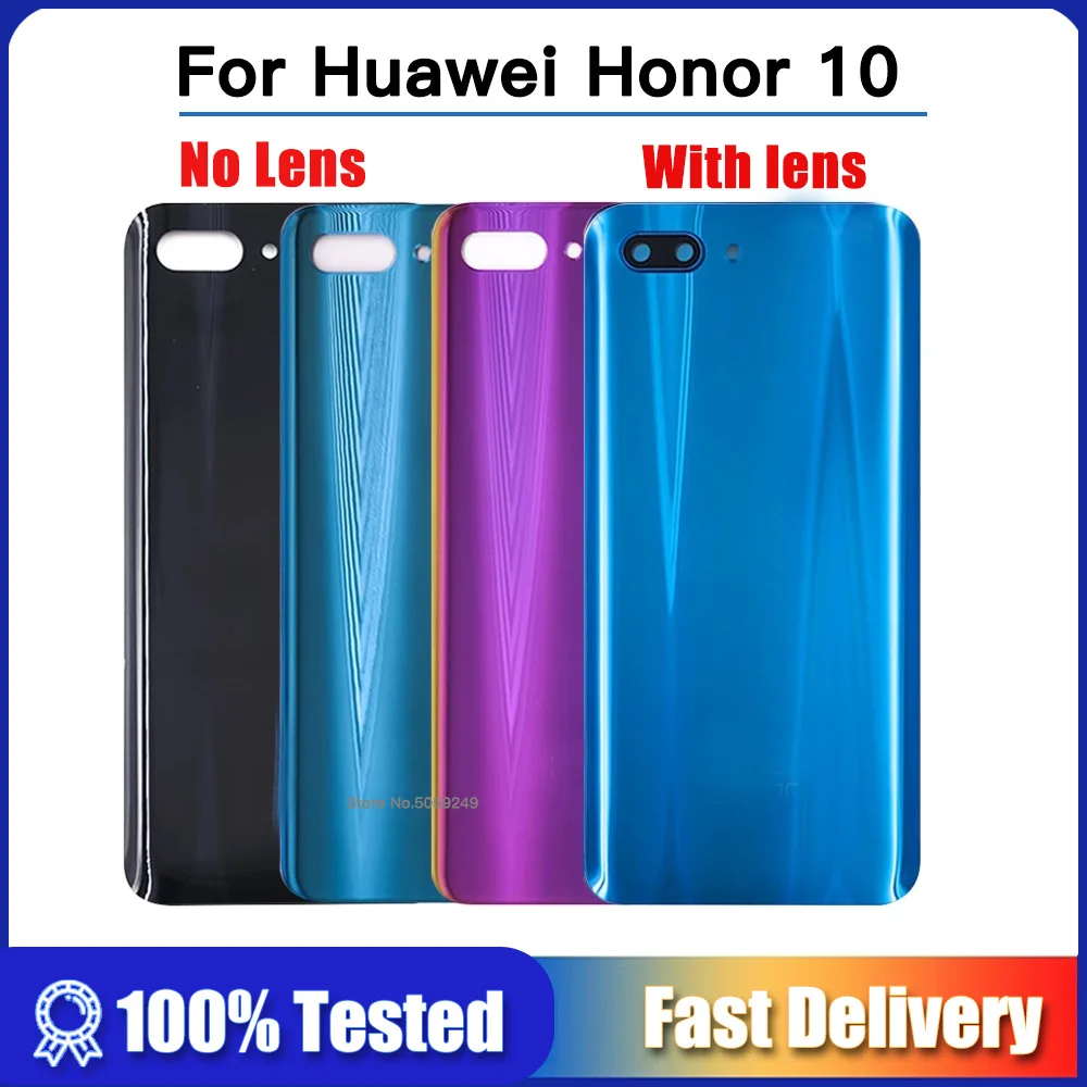 Comprar Cubierta trasera de batería para Huawei Honor 10, Panel de vidrio 3D para Honor 10, carcasa de puerta trasera, lente de cámara, reemplazo adhesivo