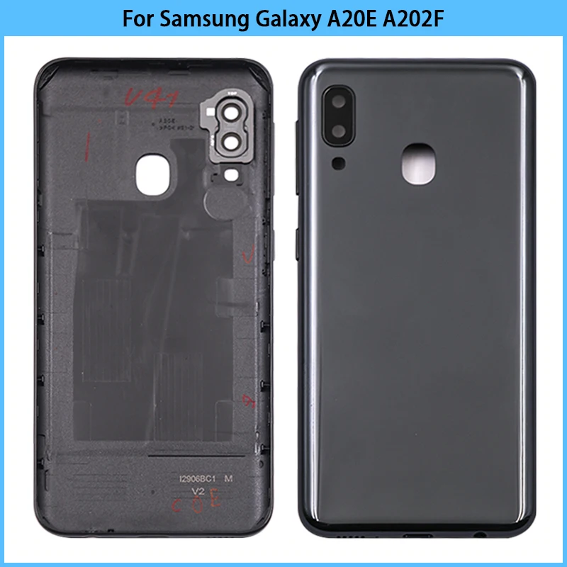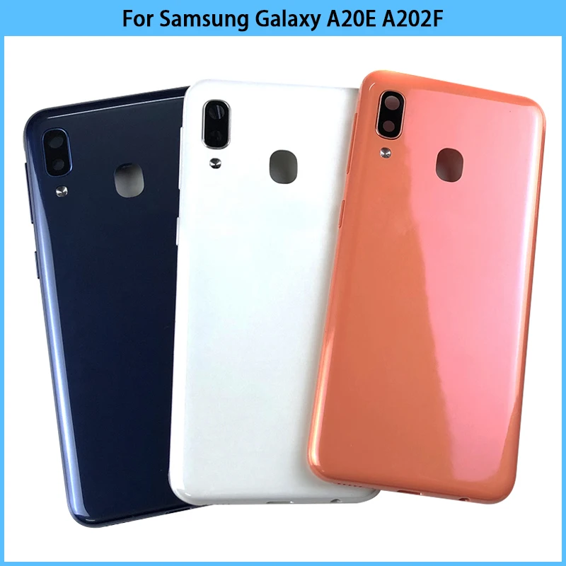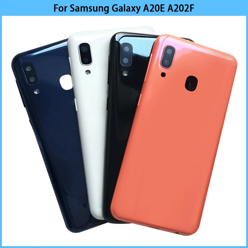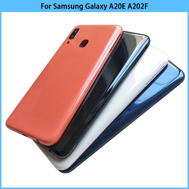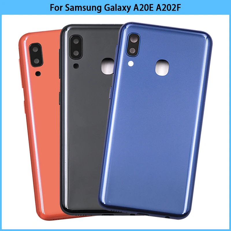 Comprar Cubierta trasera de batería para Samsung Galaxy A20E A202F, carcasa de Panel de plástico, lente de marco de cámara, reemplazo de logotipo, nuevo