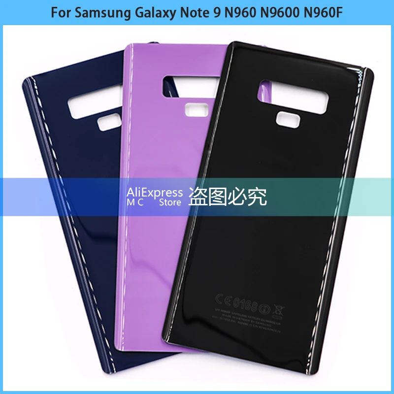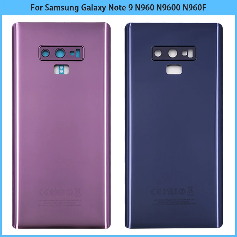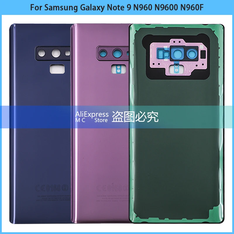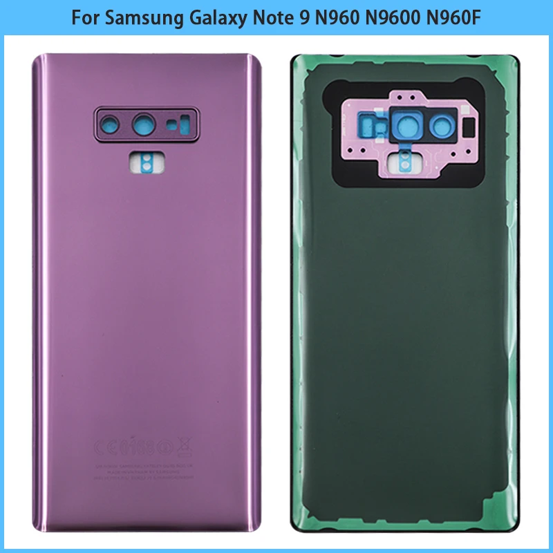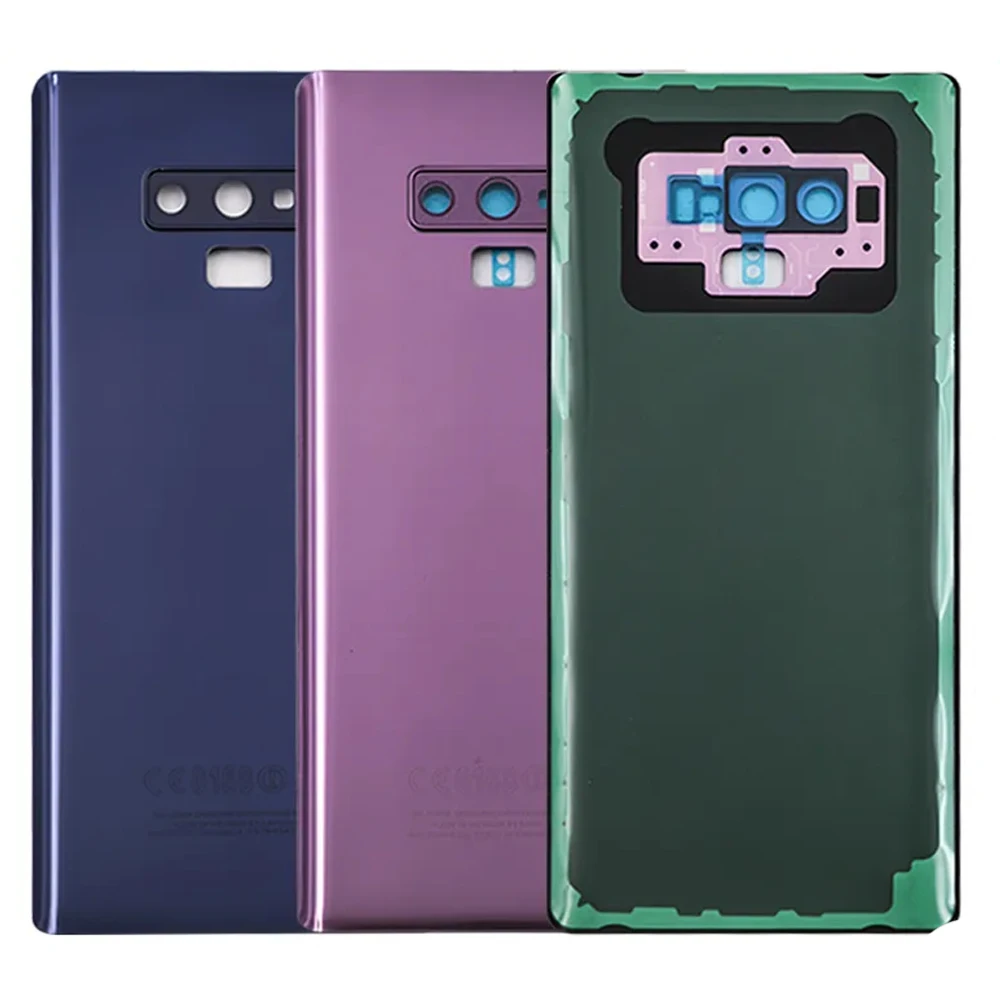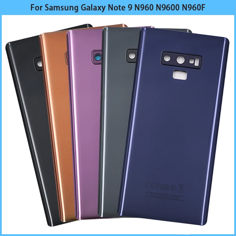 Comprar Cubierta trasera de batería para Samsung Galaxy Note 9, carcasa de Panel de vidrio 3D, adhesivo para lente de cámara, N960, N9600, N960F