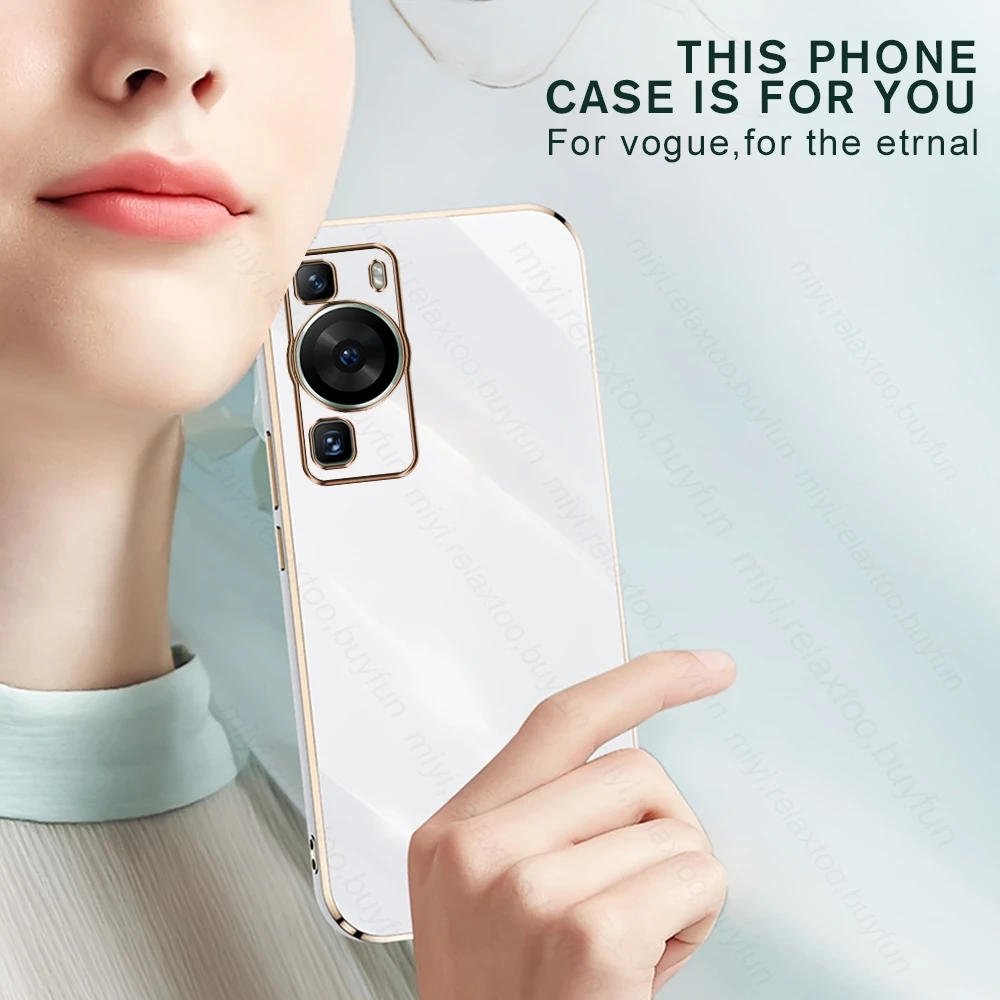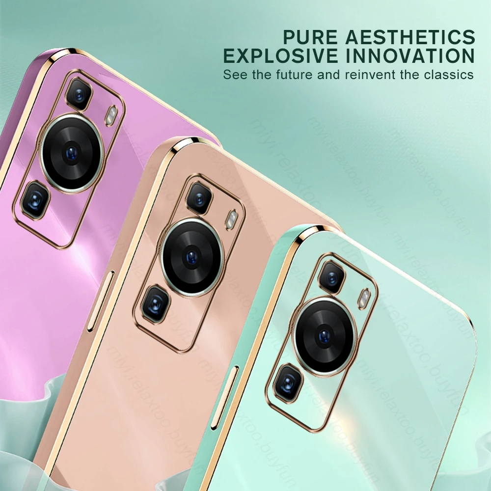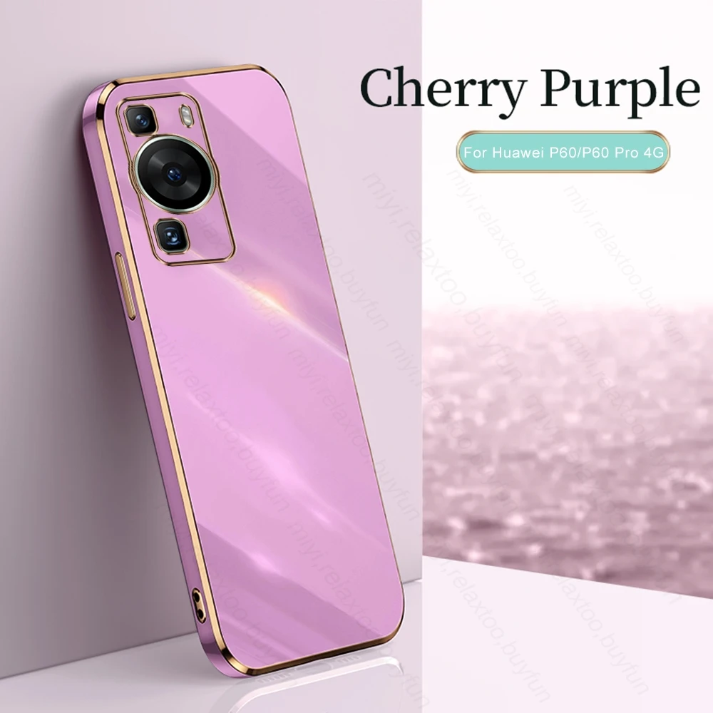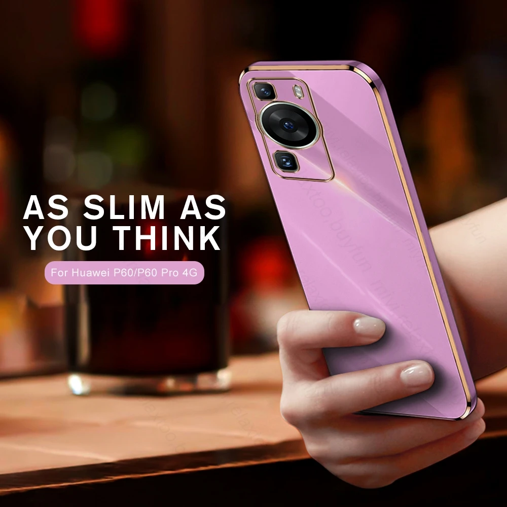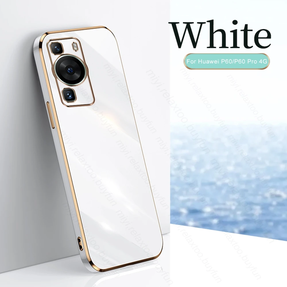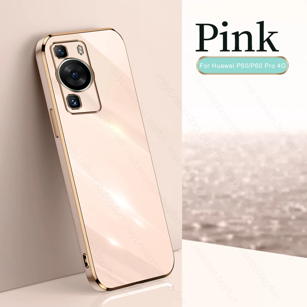 6D borde recto galvanoplastia TPU suave contraportada para Huawei P60 Pro 4G funda lente proteger a prueba de golpes Coque Hauwei P 60 Pro 4G