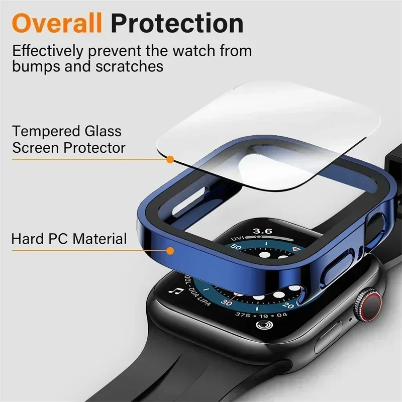 Funda para Apple Watch 10 Funda 46mm 42mm 45mm 44mm 41mm 40mm 44 Protector de pantalla de vidrio templado Serie 7 8 9 SE 6 5 4 Accesorios
