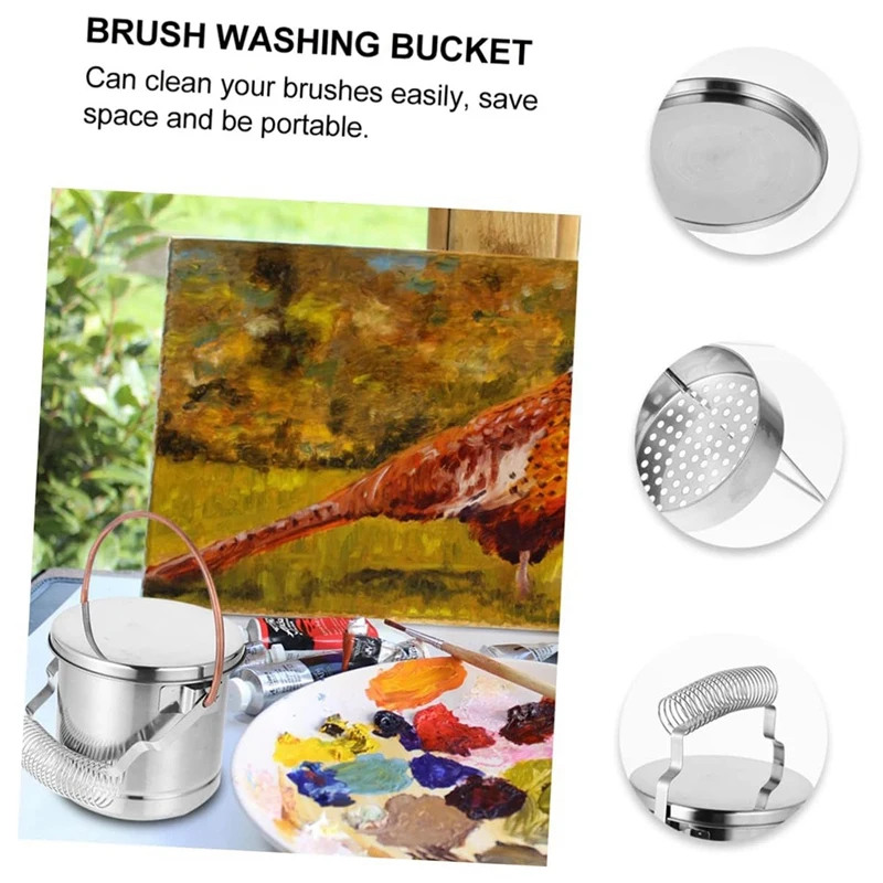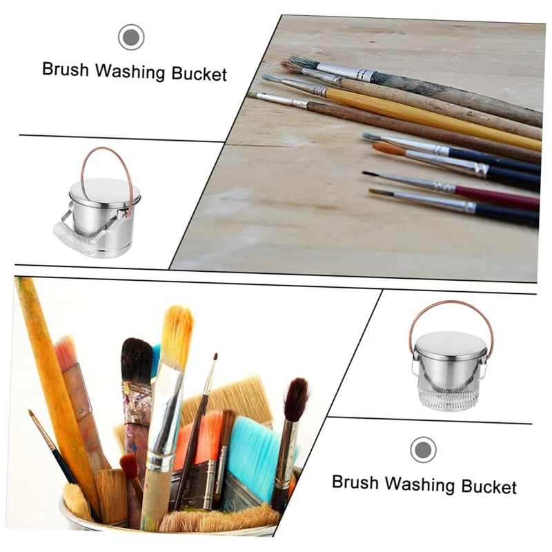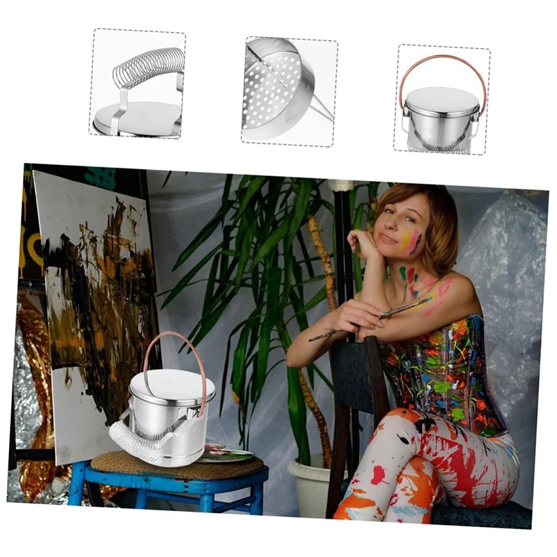 Comprar Cubo de lápiz para pintura, limpiador de pinceles de acero inoxidable plateado, soporte de Metal, bañera de Metal hermética, 1 pieza