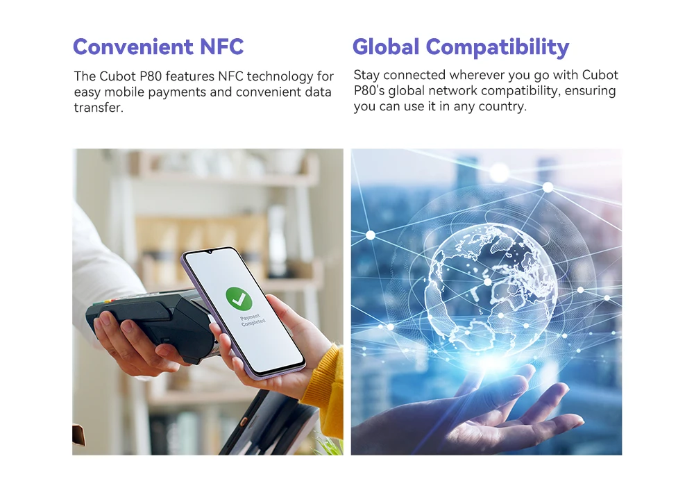 The Cubot P80 features NFC technology for easy mobile payments and convenient data transfer.