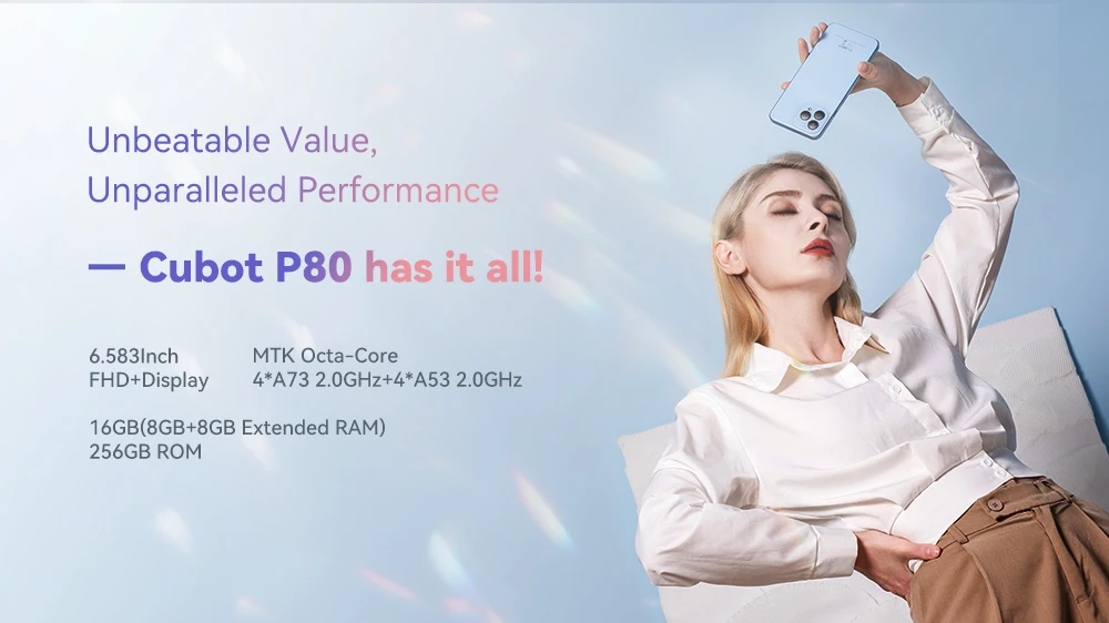 Store all your photos, videos, and apps with ease on the Cubot P80's massive 256GB/512GB ROM, plus enjoy the lightning-fast performance with 16GB of storage (8GB internal storage and 8GB extended RAM).