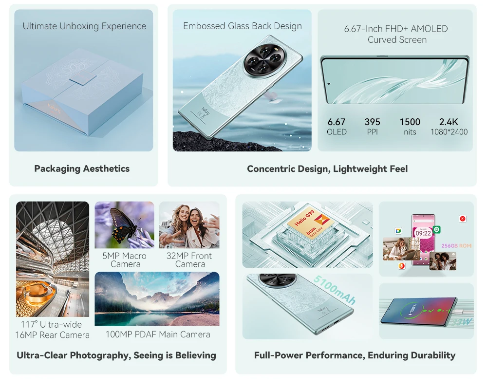 Comprar Cubot Hafury Meet, Smartphone Android, Pantalla Curva AMOLED de 6.67" 120Hz, 24GB RAM(12GB+12GB Extendido), 256GB ROM, Helio G99, Cámara de 100MP, NFC, moviles baratos 2024, 4G phone, Versión Global telefonos