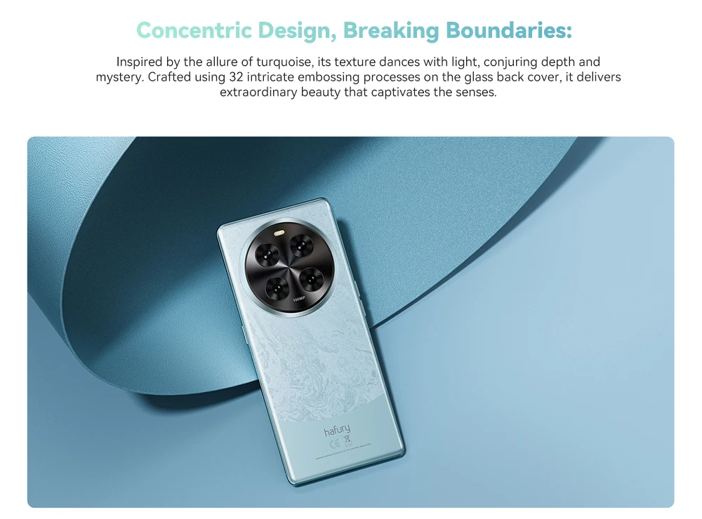 Inspirado en el encanto de la turquesa, su textura baila con la luz, conjurando profundidad y misterio. Elaborado con 32 intrincados procesos de grabado en la cubierta posterior de vidrio, ofrece una belleza extraordinaria que cautiva los sentidos.