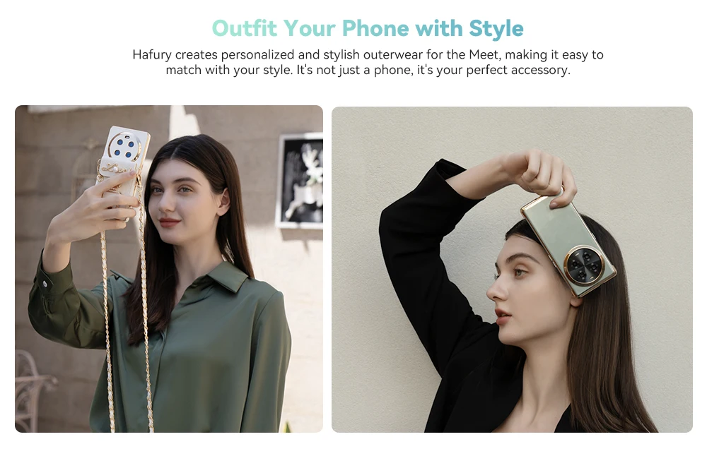 Hafury crea prendas de abrigo personalizadas y elegantes para Meet, haciendo que sea fácil de combinar con su estilo. No es solo un teléfono, es tu accesorio perfecto.