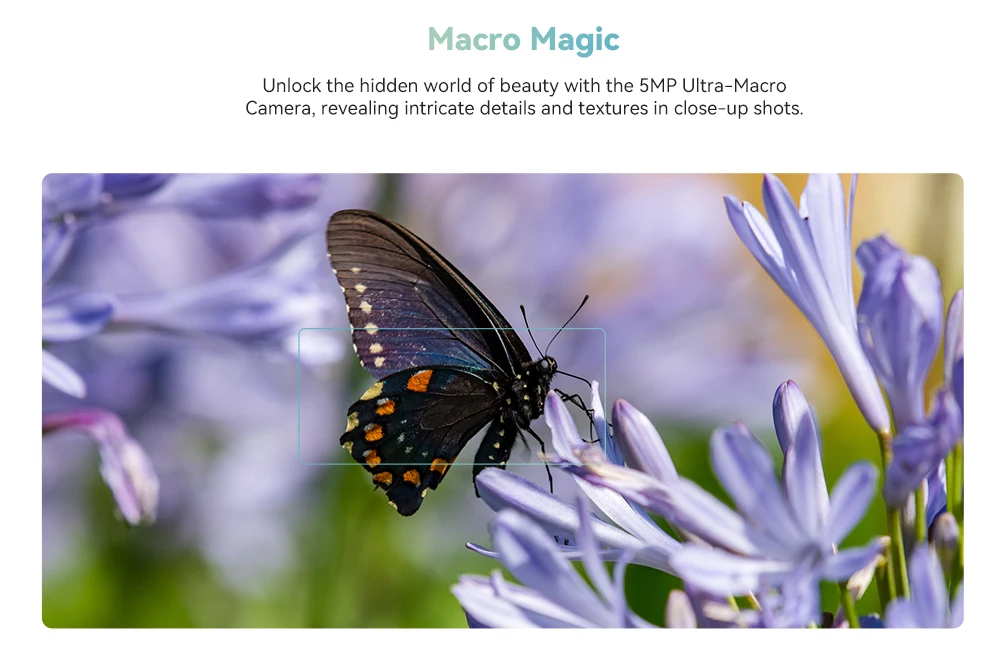 Desbloquea el mundo oculto de la belleza con la cámara Ultra-Macro de 5MP, que revela detalles y texturas intrincadas en primeros planos.