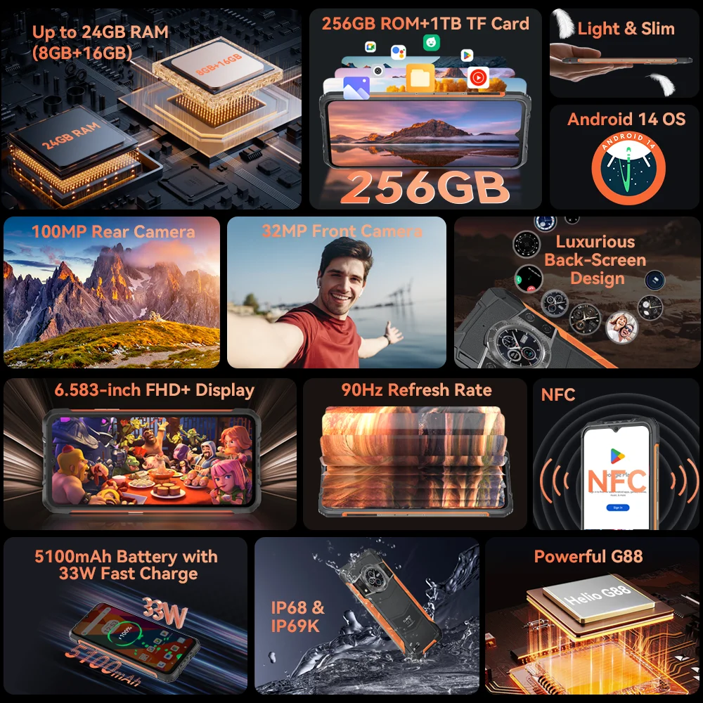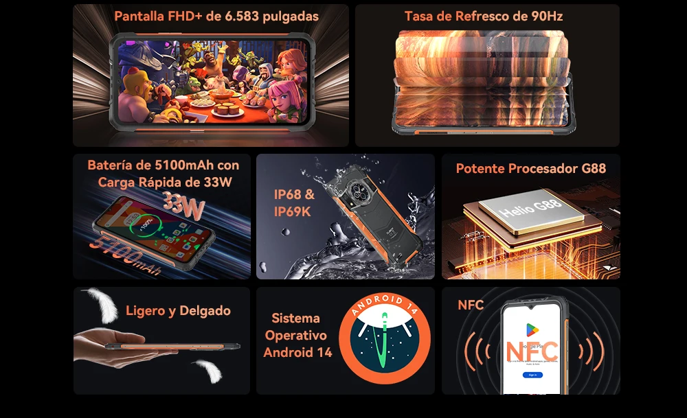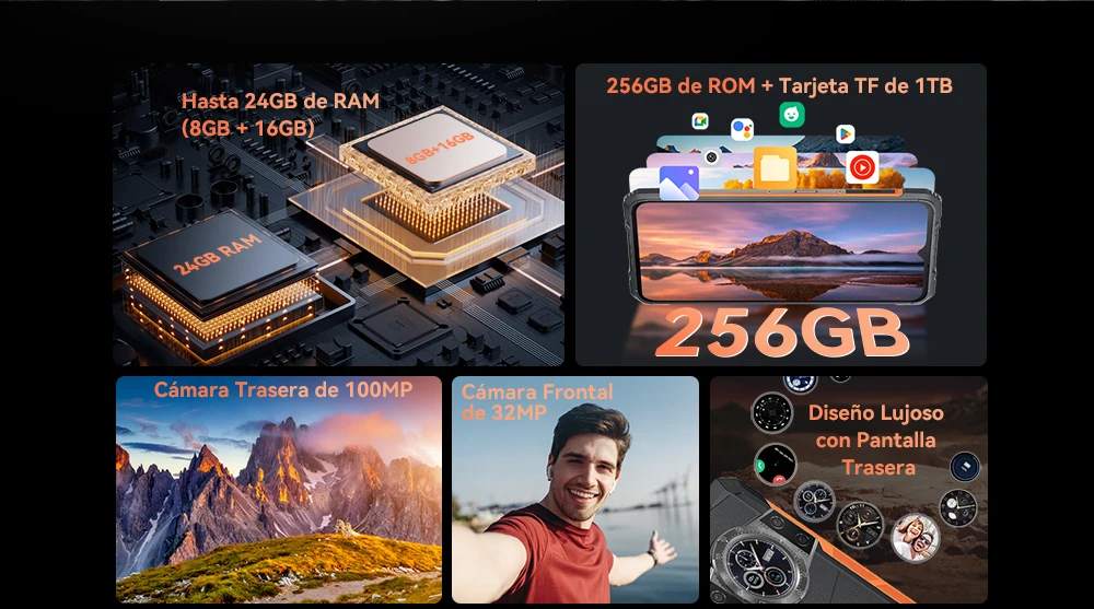 Comprar Cubot KingKong ACE 3, smartphone Android 14, 24 GB de RAM (8 GB + 16 GB ampliado), 256 GB de ROM, pantalla FHD+ de 6.583 pulgadas a 90 Hz, pantalla dual, 4G movil,cámara de 100 MP [Envío desde España]