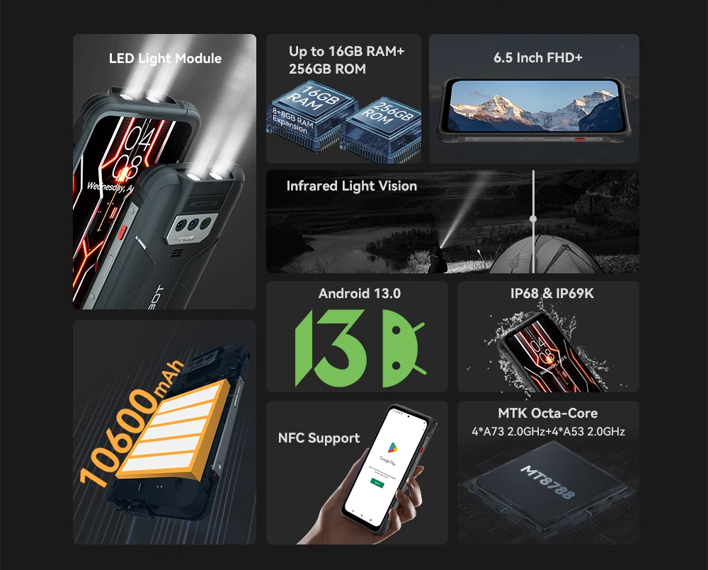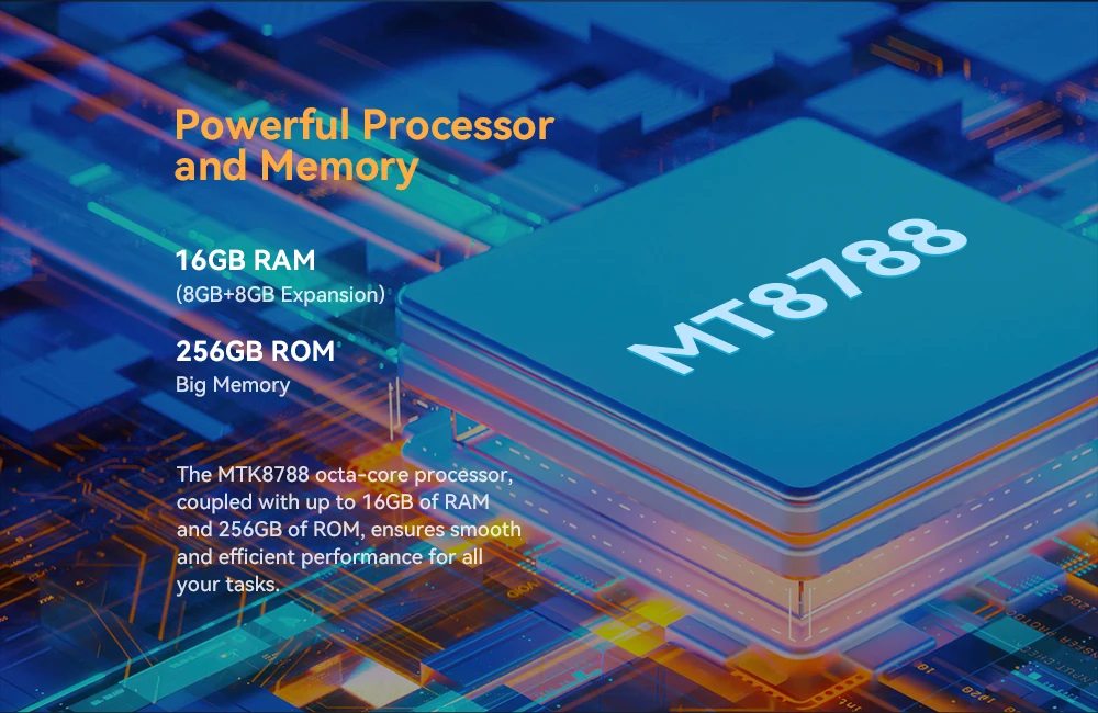 El procesador octa-core MTK8788, junto con hasta 16GB de RAM y 256GB de ROM, garantiza un rendimiento fluido y eficiente para todas sus tareas.