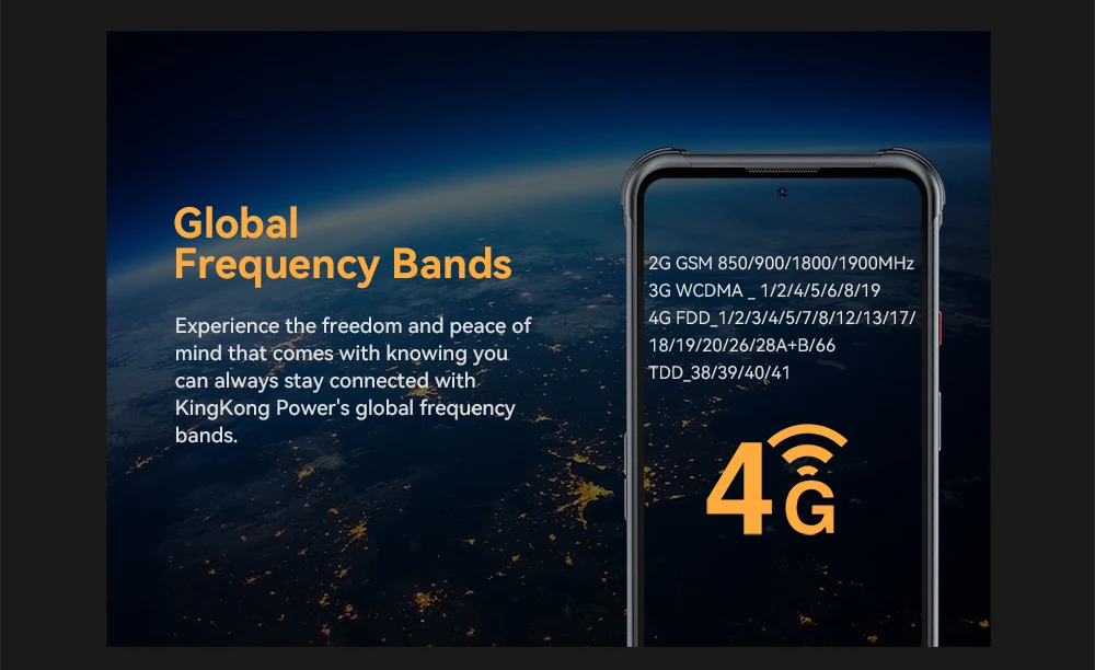 Experimente la libertad y la tranquilidad de saber que siempre puede mantenerse conectado con las bandas de frecuencia globales de KingKong Power.
