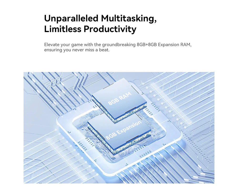 Eleve su juego con la innovadora RAM de expansión de 8GB + 8GB, lo que garantiza que nunca se pierda el ritmo.