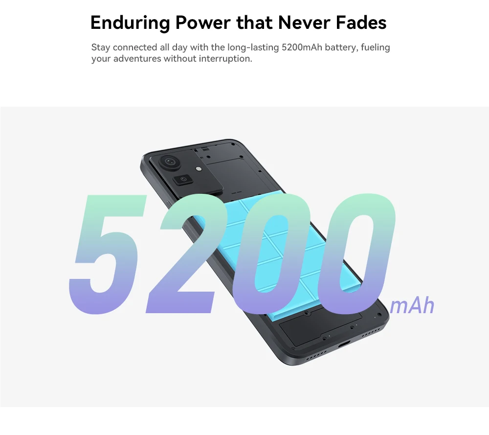 Manténgase conectado todo el día con la batería de larga duración de 5200mAh, alimentando sus aventuras sin interrupción.